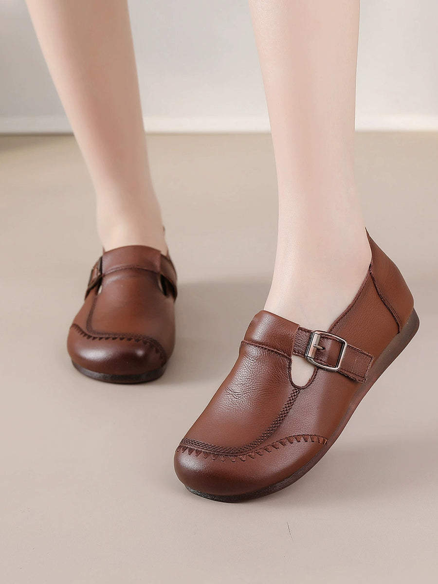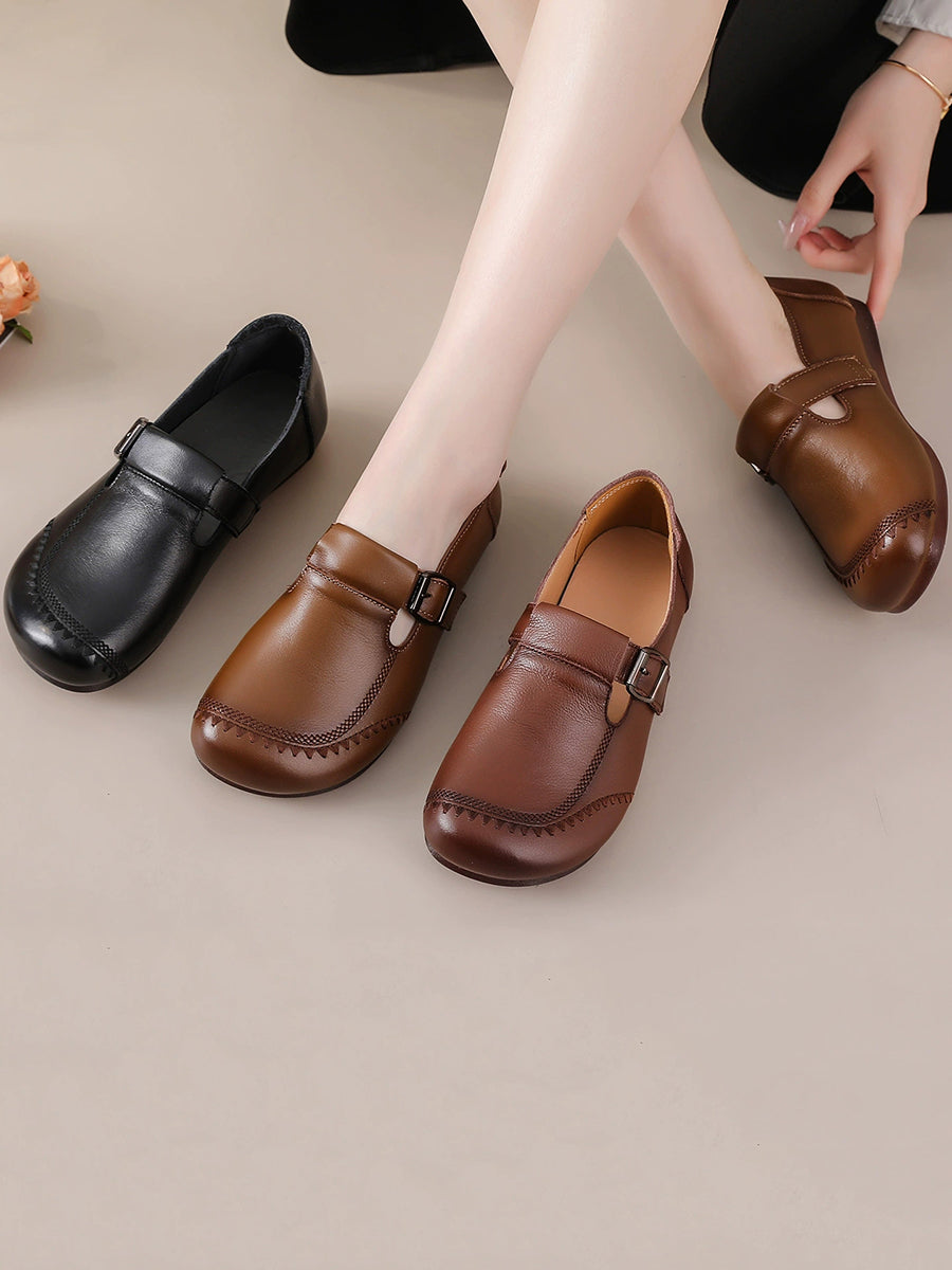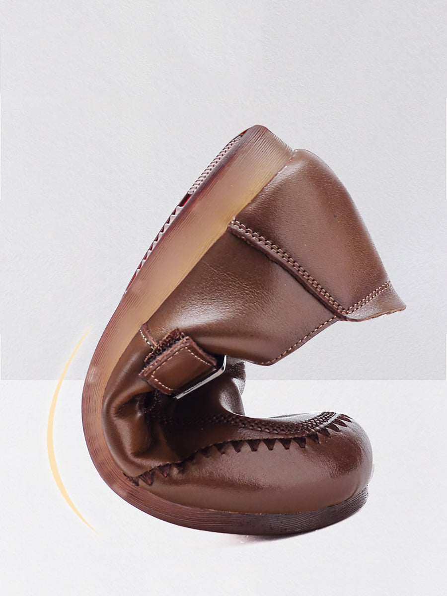 נעליים שטוחות מעור אמיתי בצבע טהור לנשים
