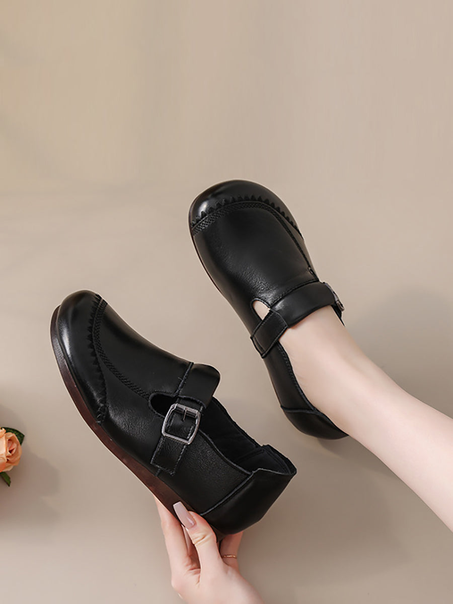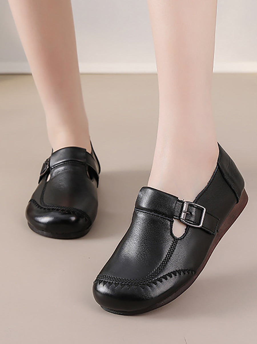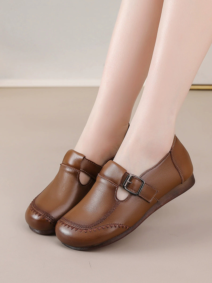 נעליים שטוחות מעור אמיתי בצבע טהור לנשים