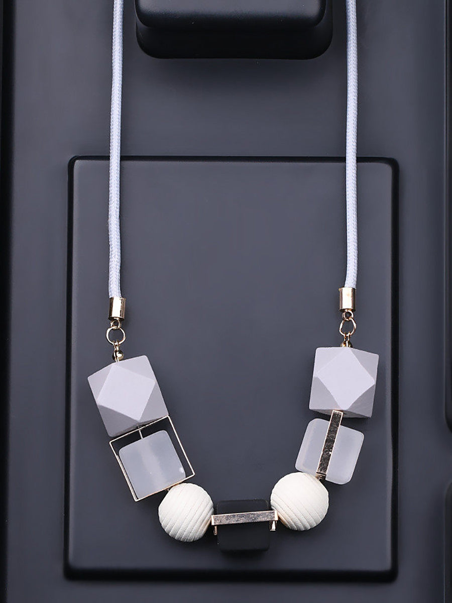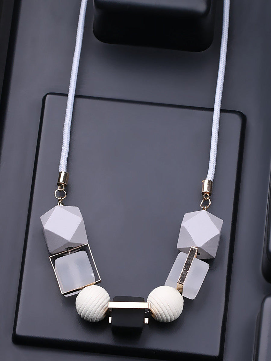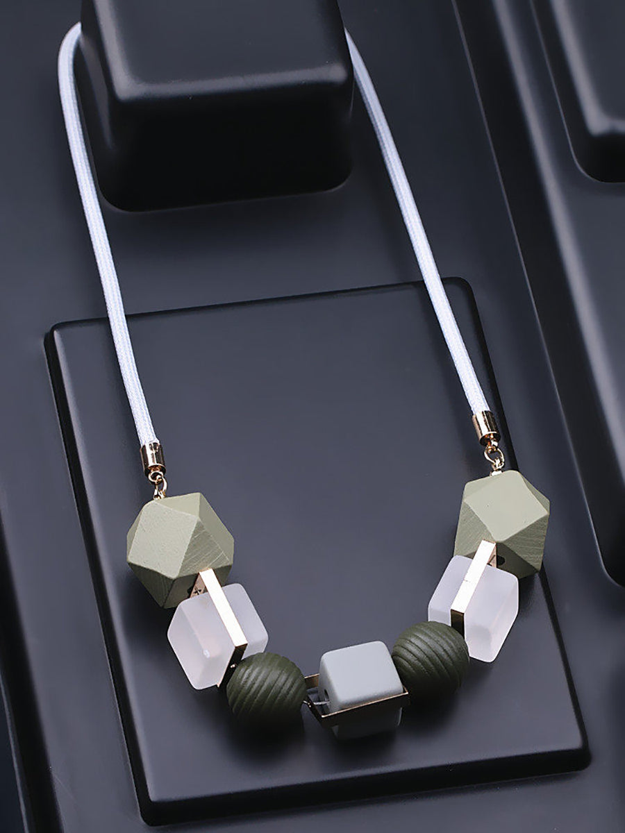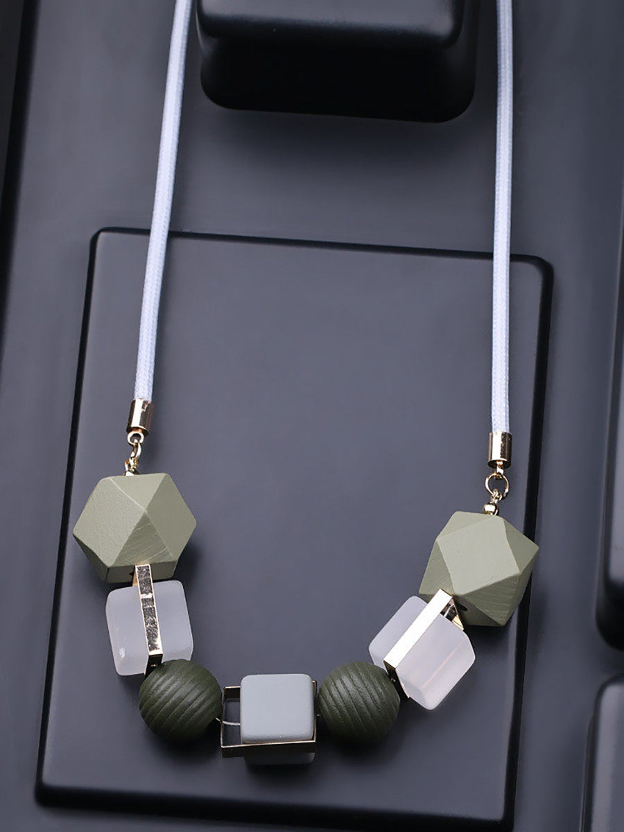 שרשרת אריגת עץ אבן שרף אתנית לנשים