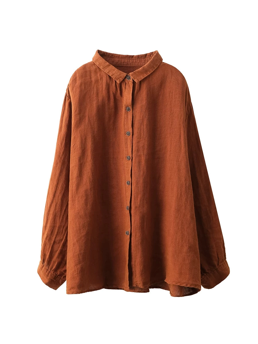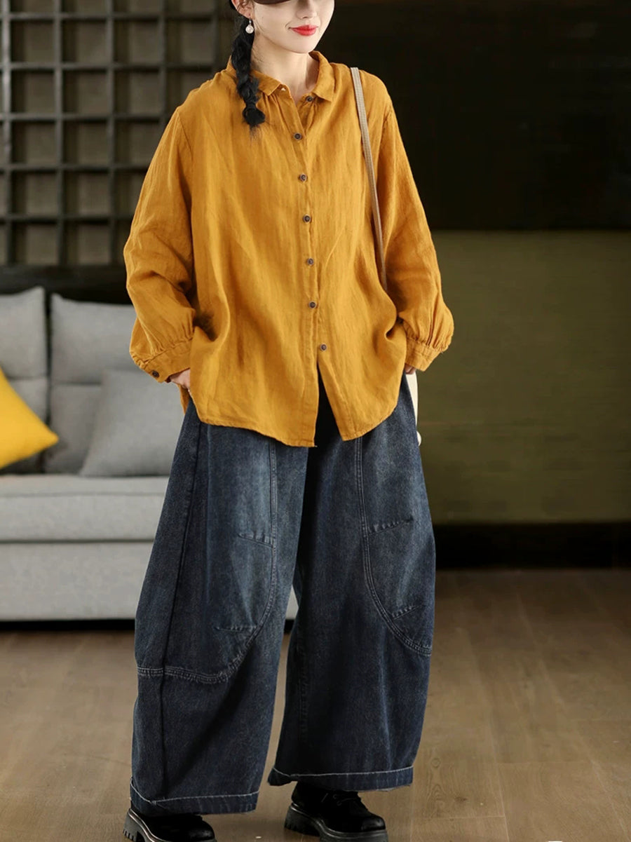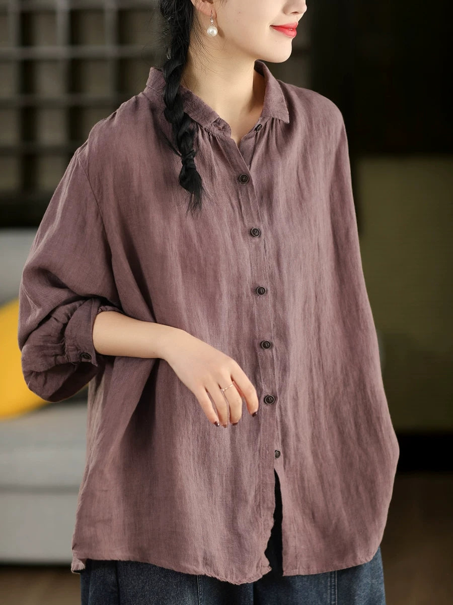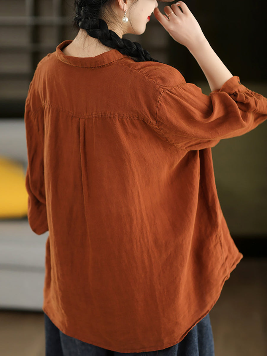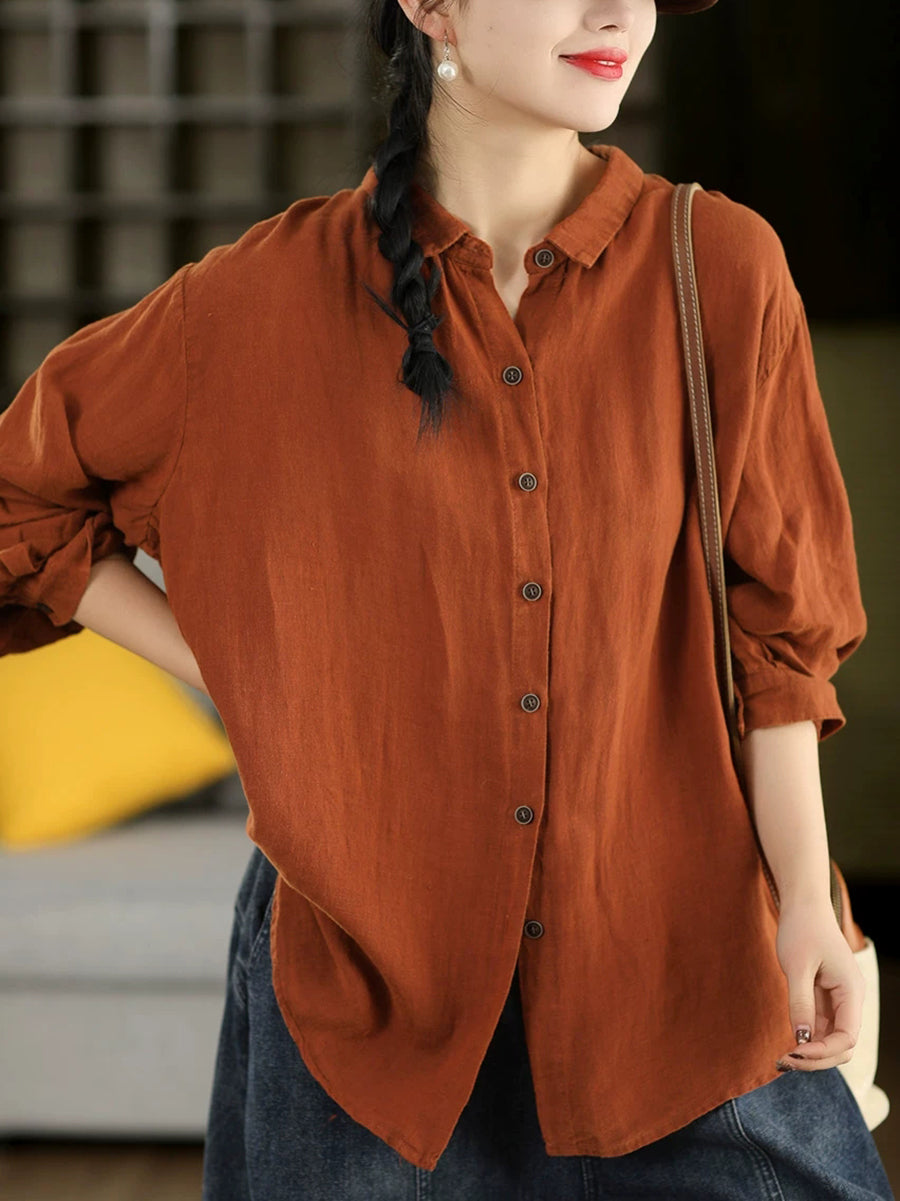 חולצת אביב לנשים עם צווארון הפוך, צבע טהור 100% כותנה, אומנותית