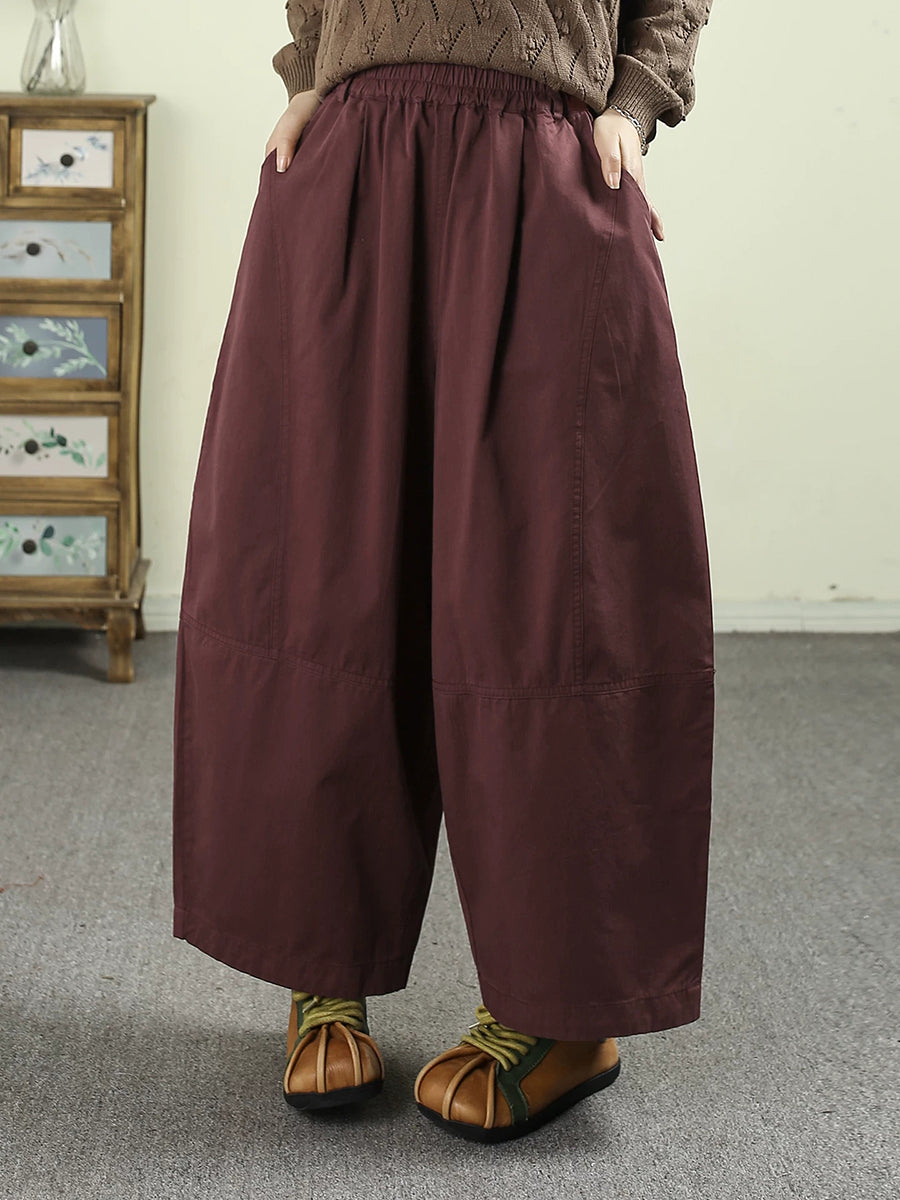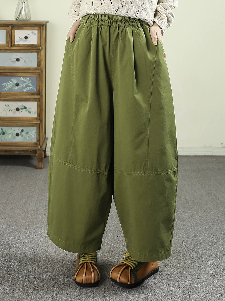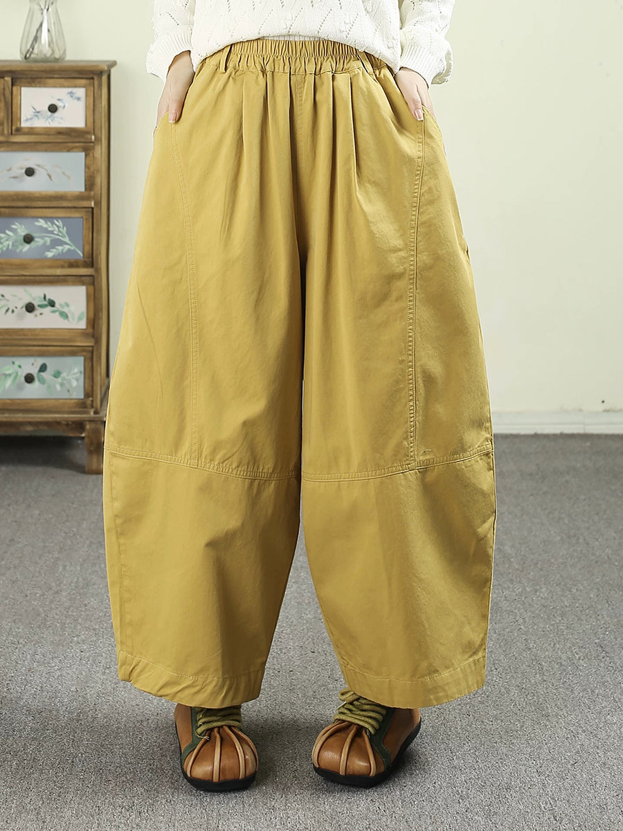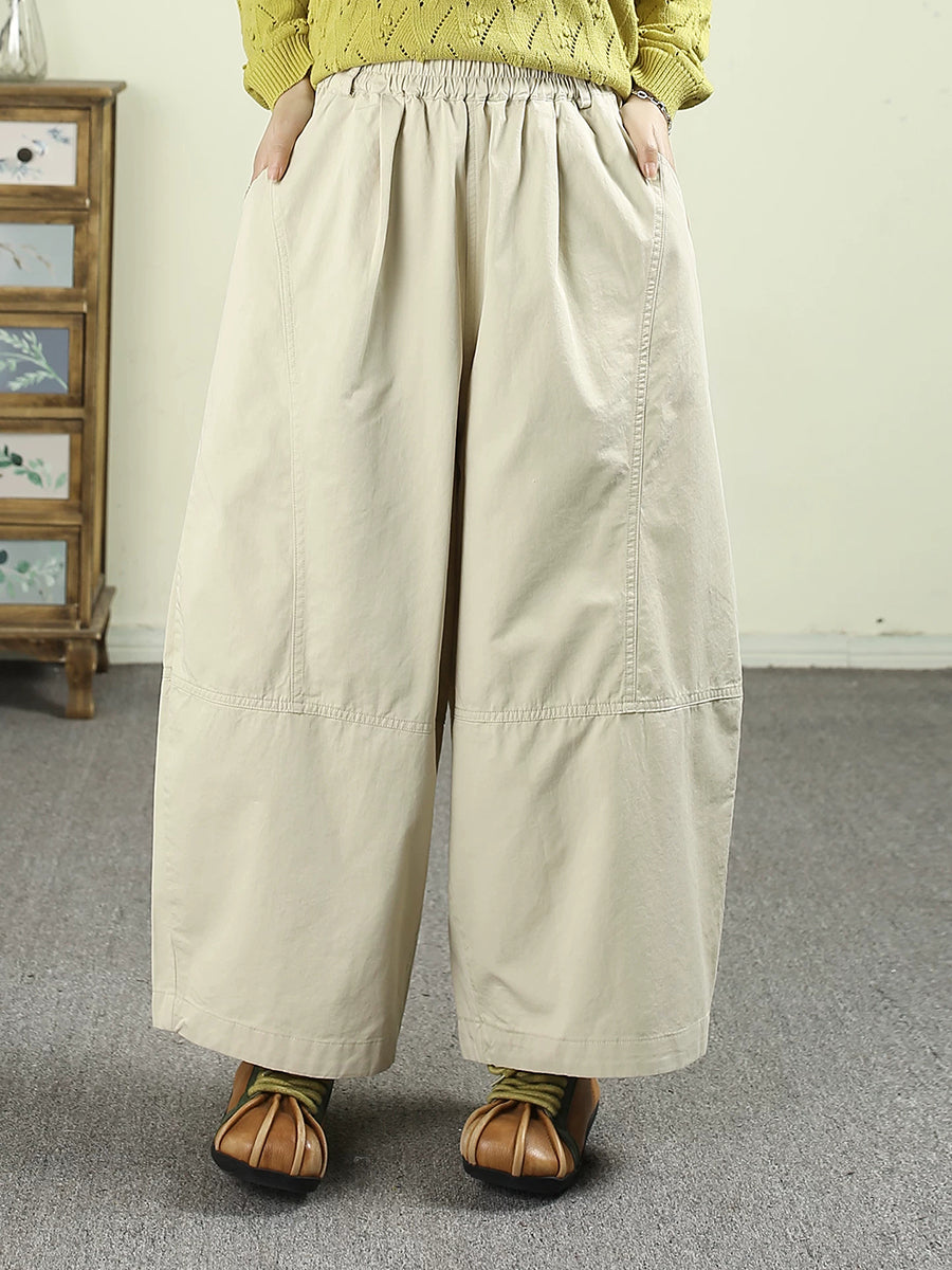 מכנסי אביב מזדמנים בצבע טהור כותנה רחבים לנשים