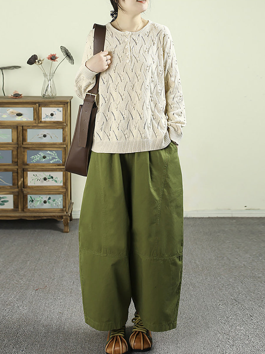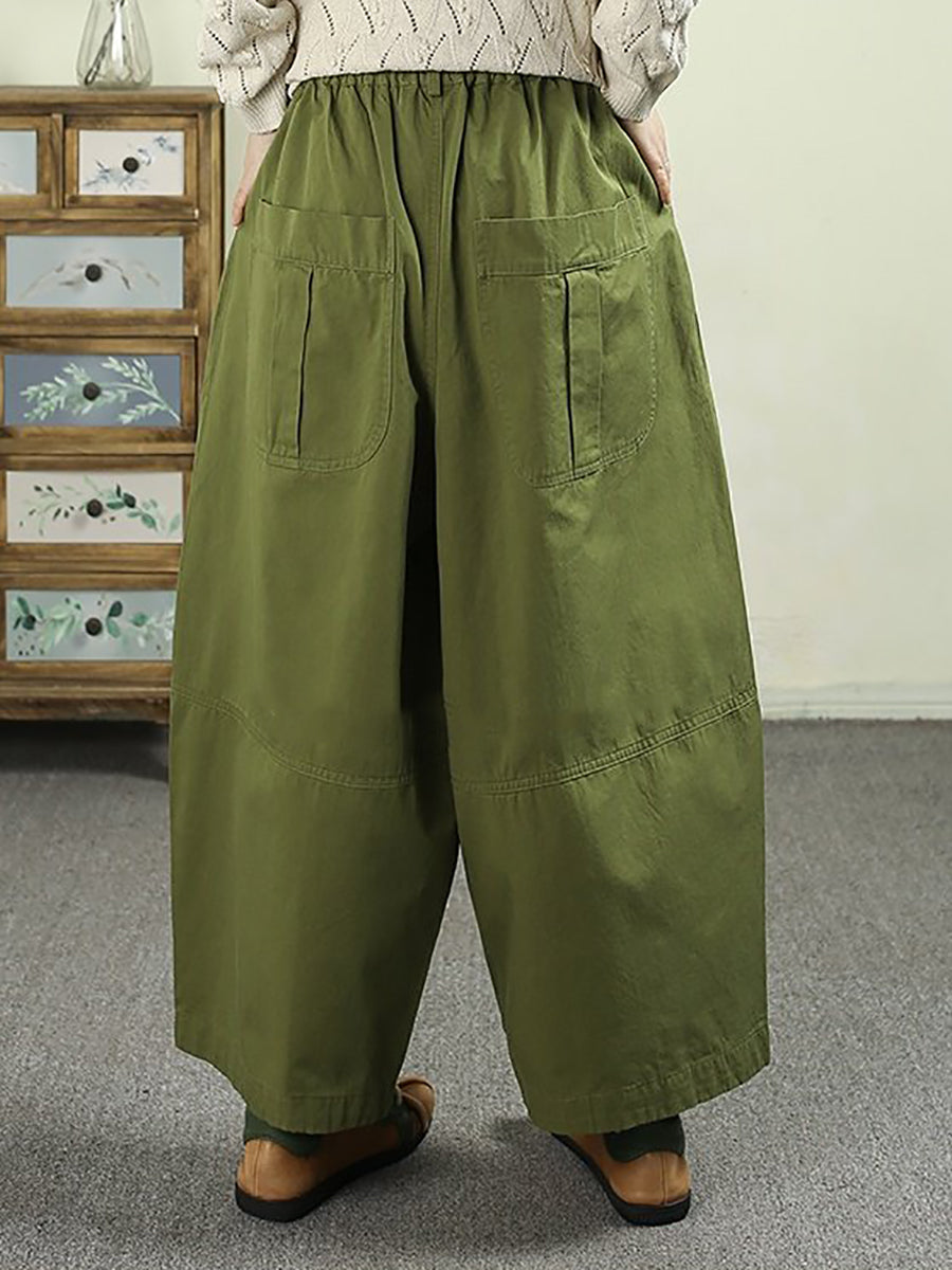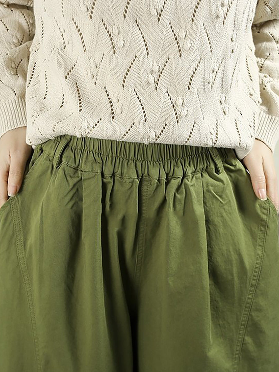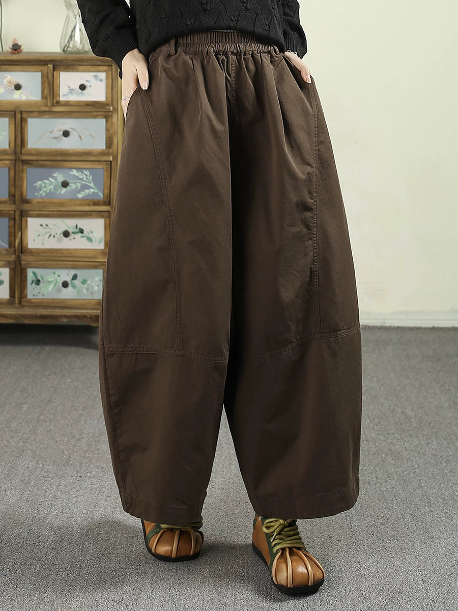 מכנסי אביב מזדמנים בצבע טהור כותנה רחבים לנשים