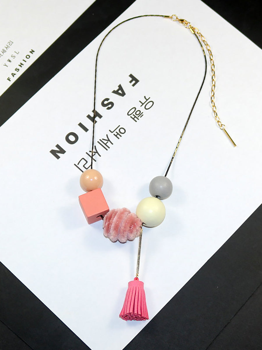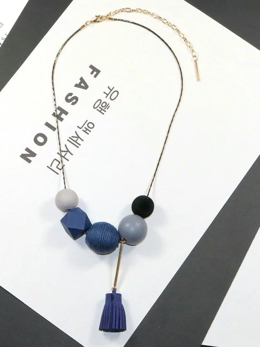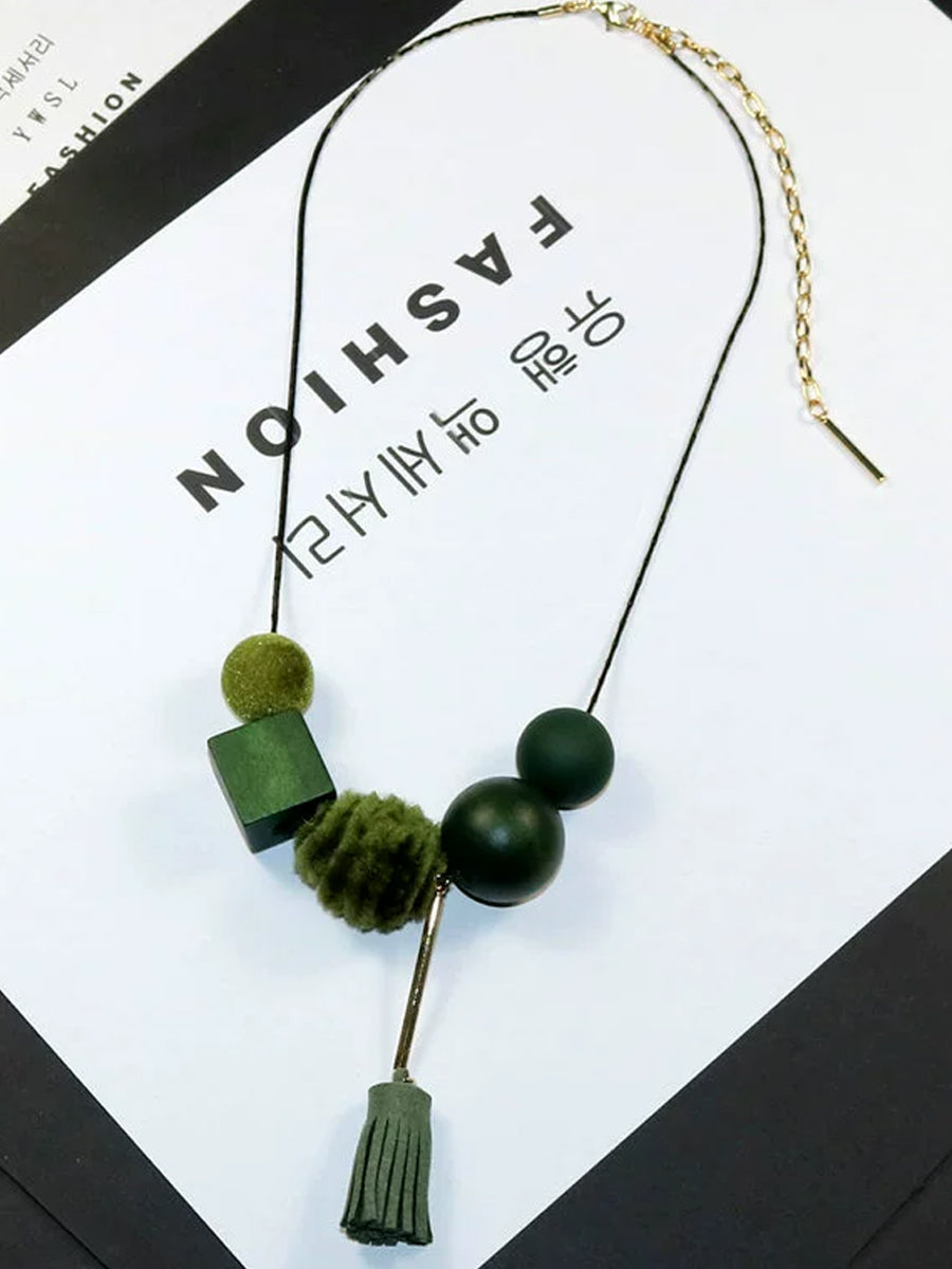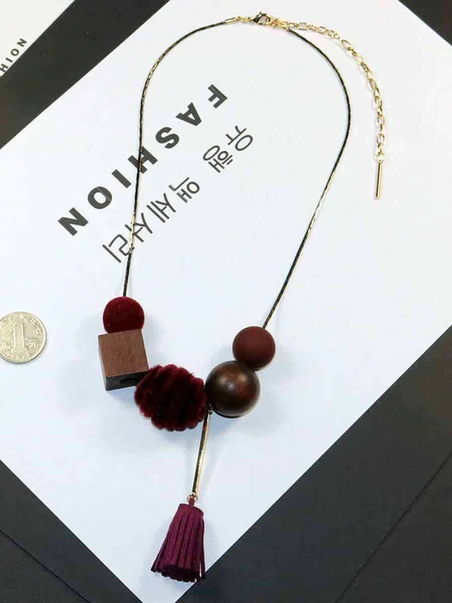 שרשרת כדור עץ סגסוגת וינטג' לנשים