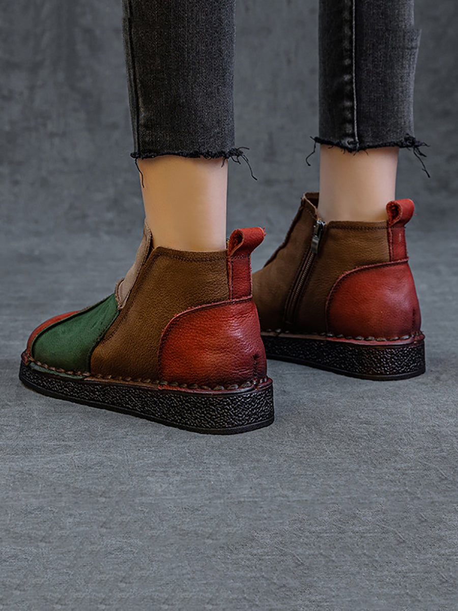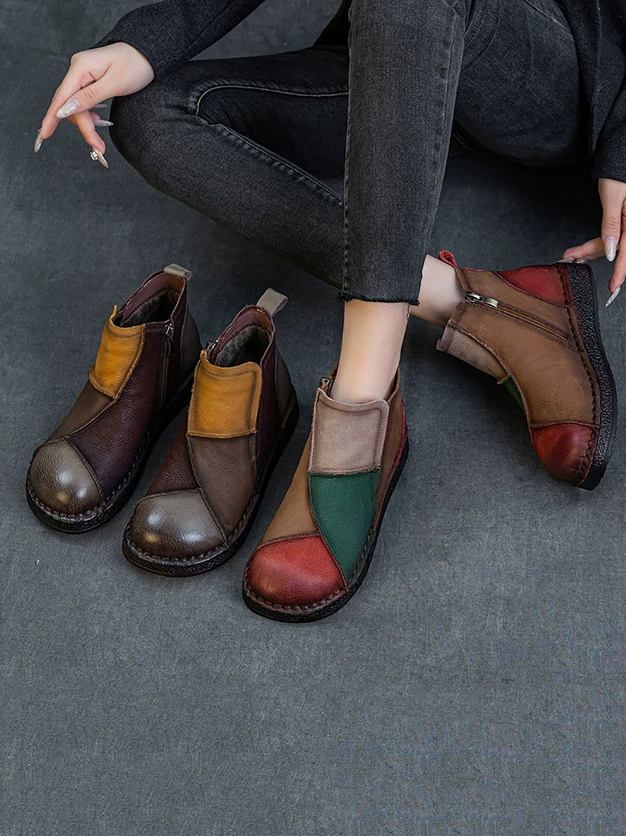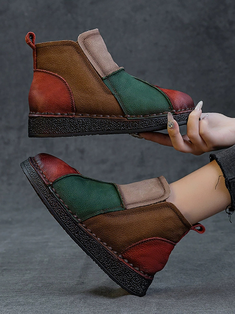 מגפי קרסול מעור אמיתי עם שוליים צבעוניים לחורף לנשים