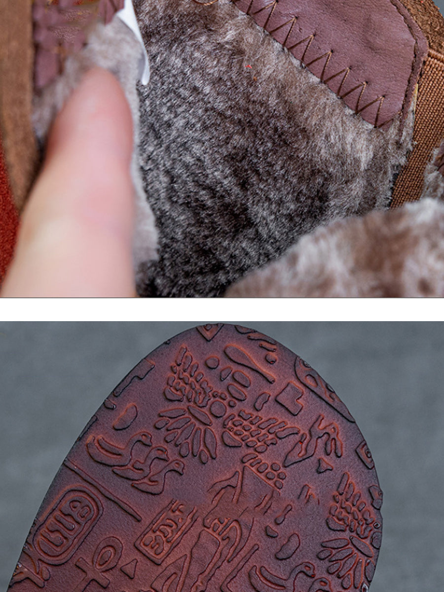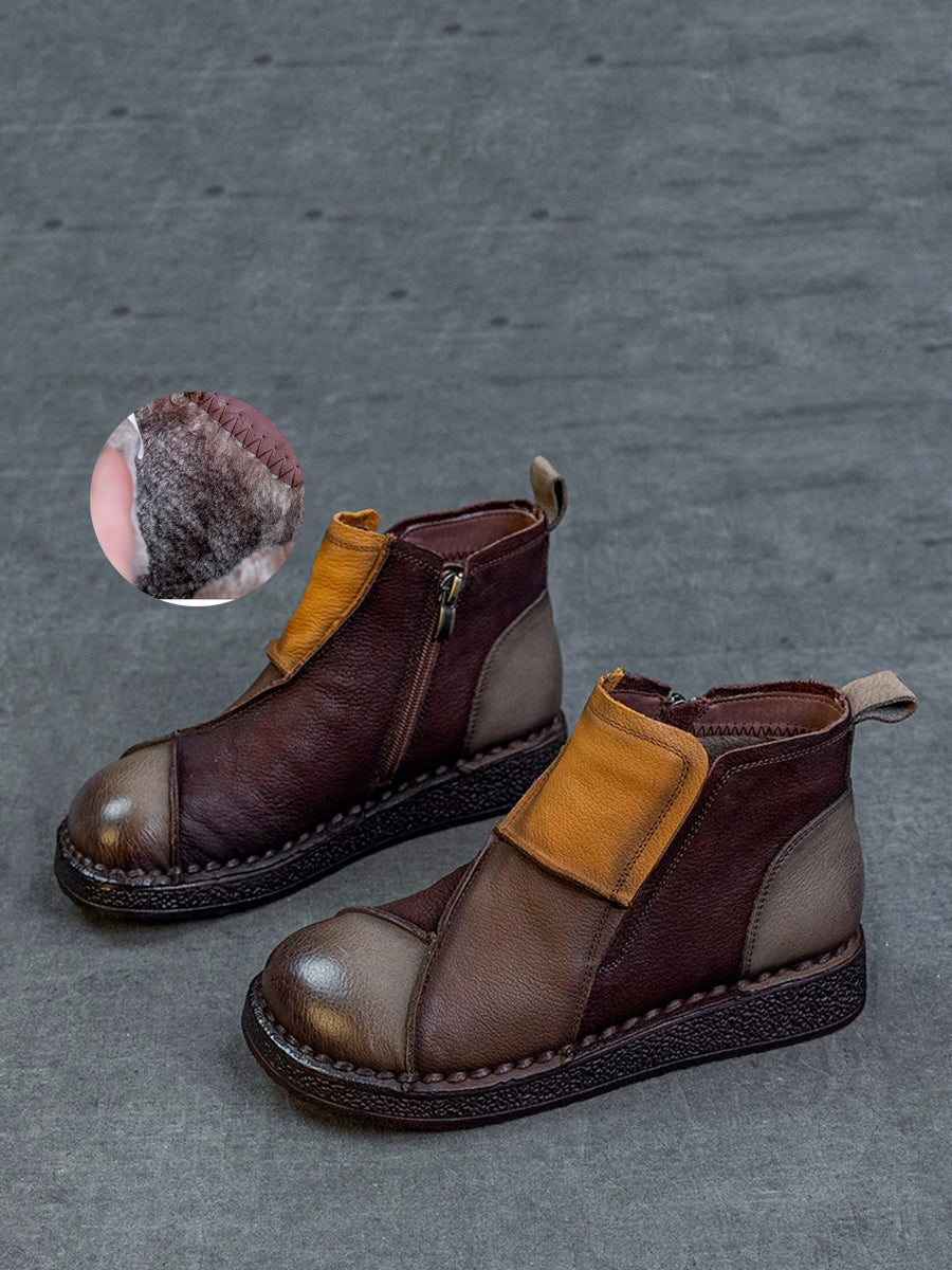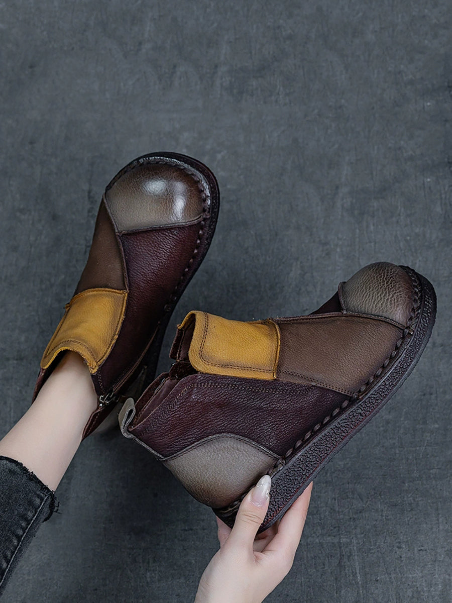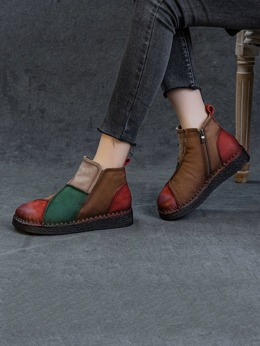 מגפי קרסול מעור אמיתי עם שוליים צבעוניים לחורף לנשים
