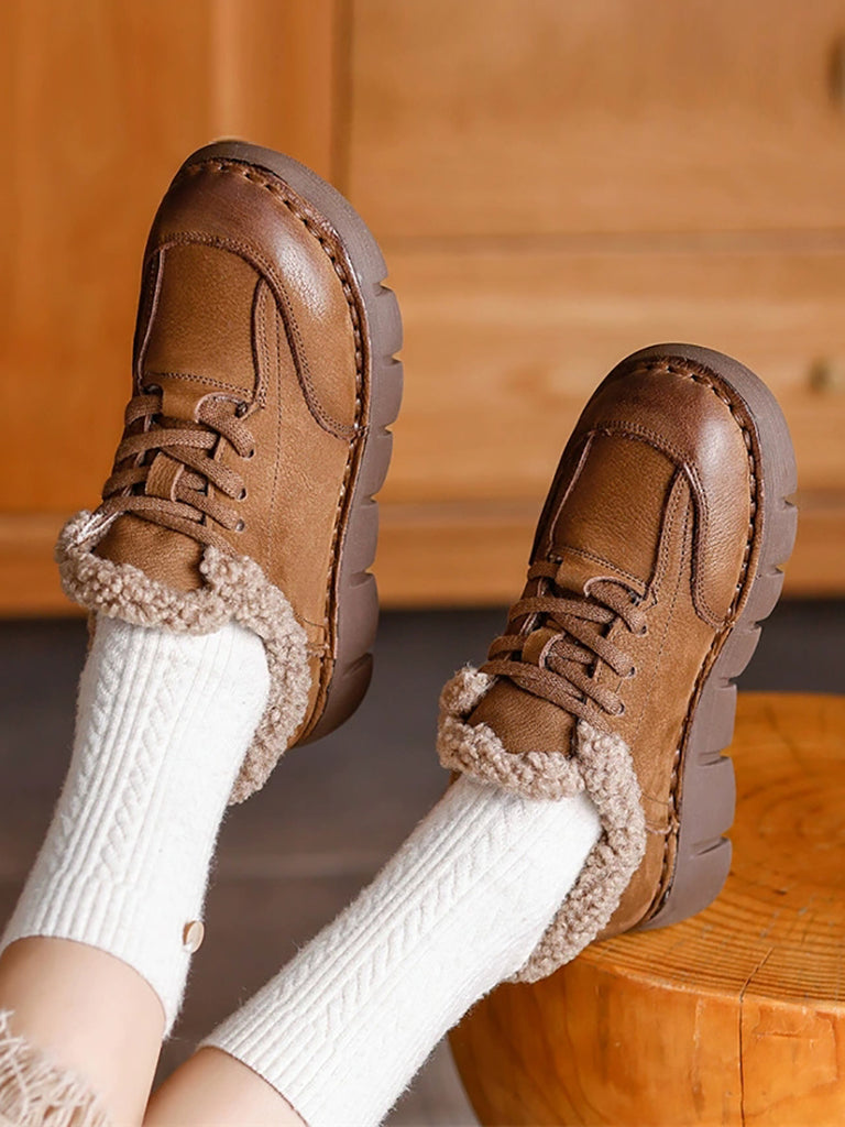 Women Winter Genuine Leather Fleece-lined Platform Shoes