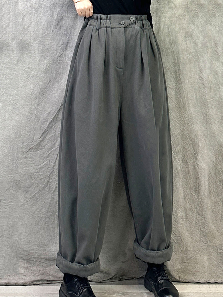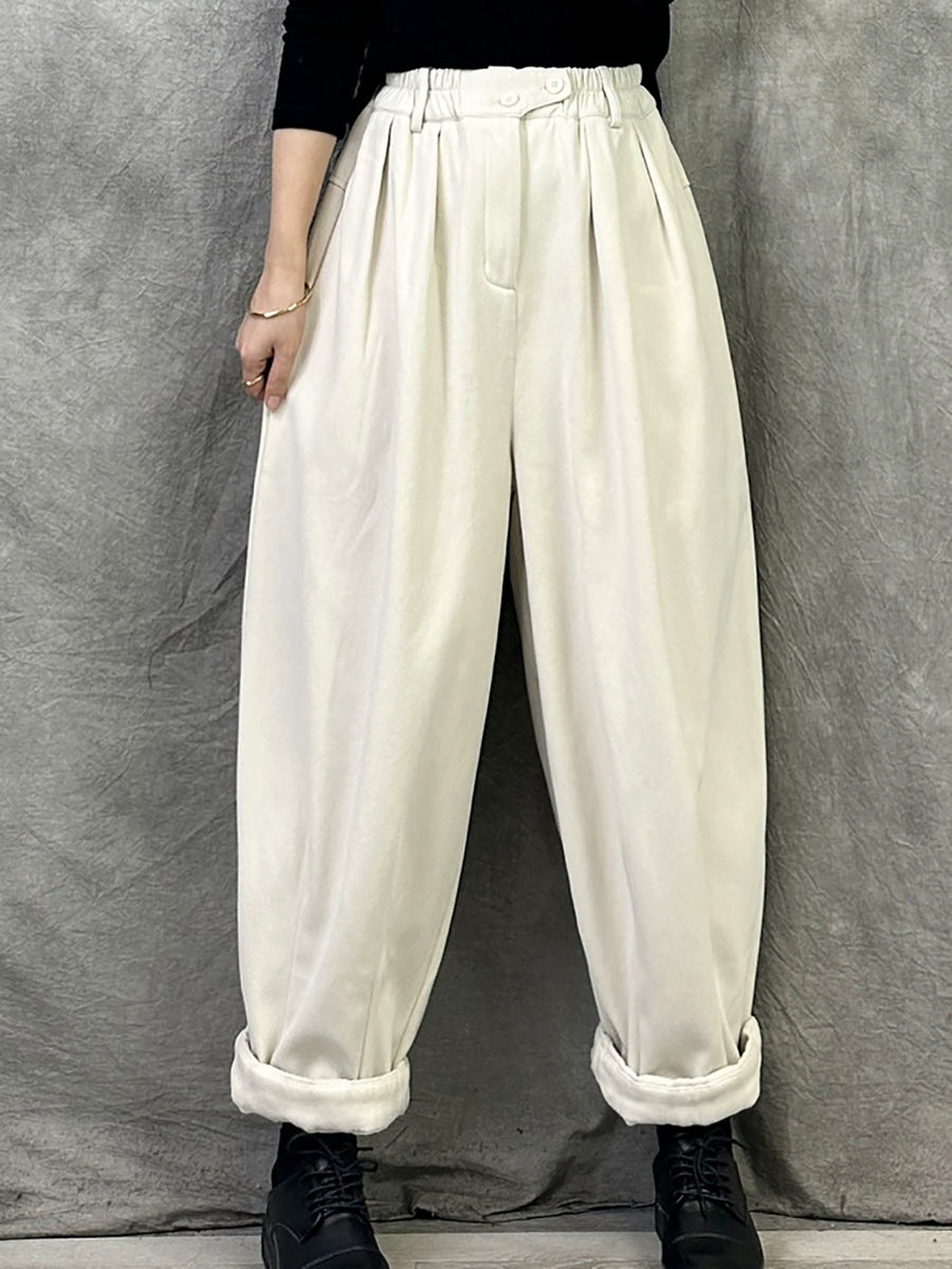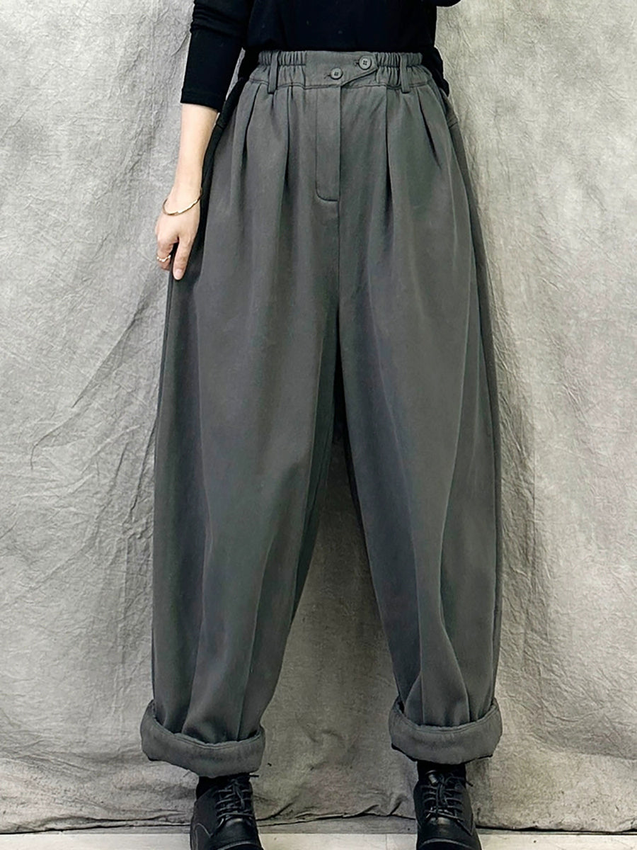 Women Winter Casual Pure Color Fleece-lined Harem Pants