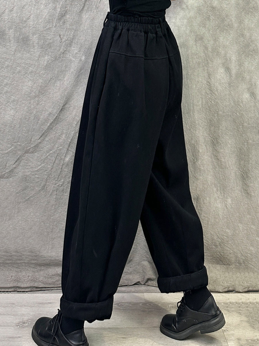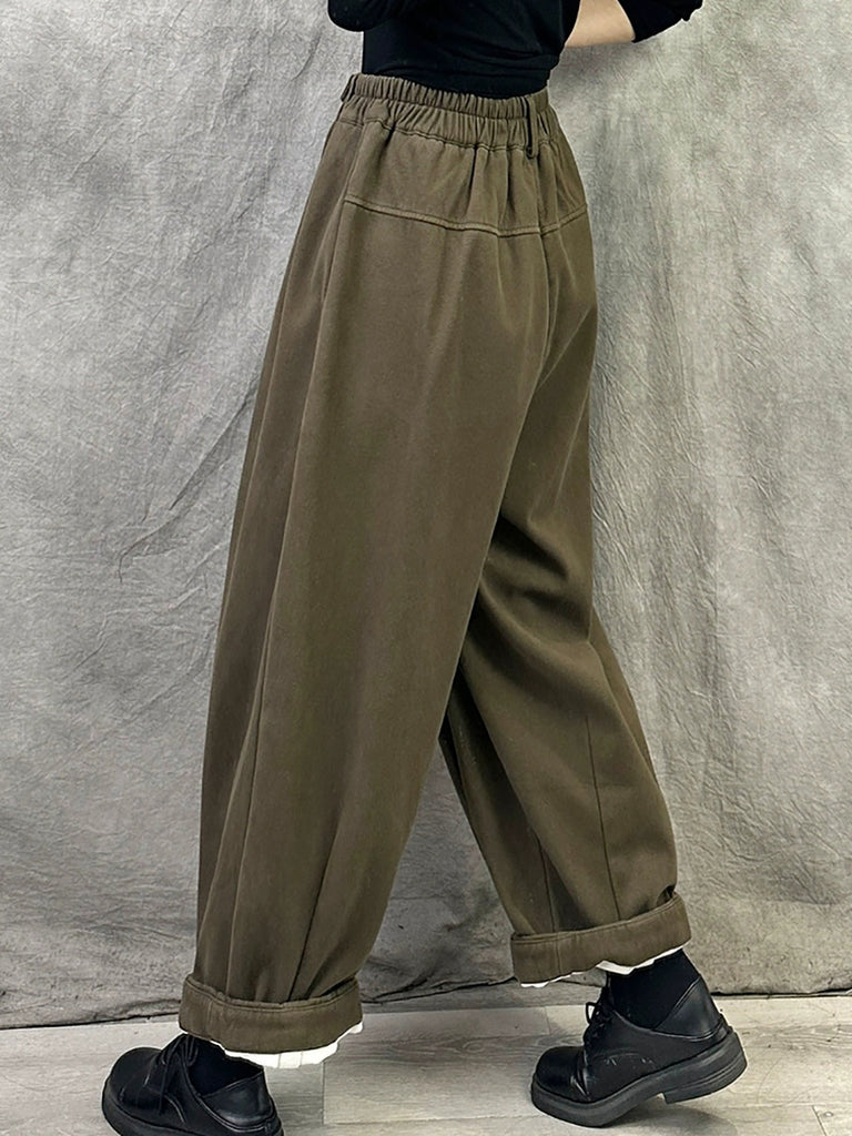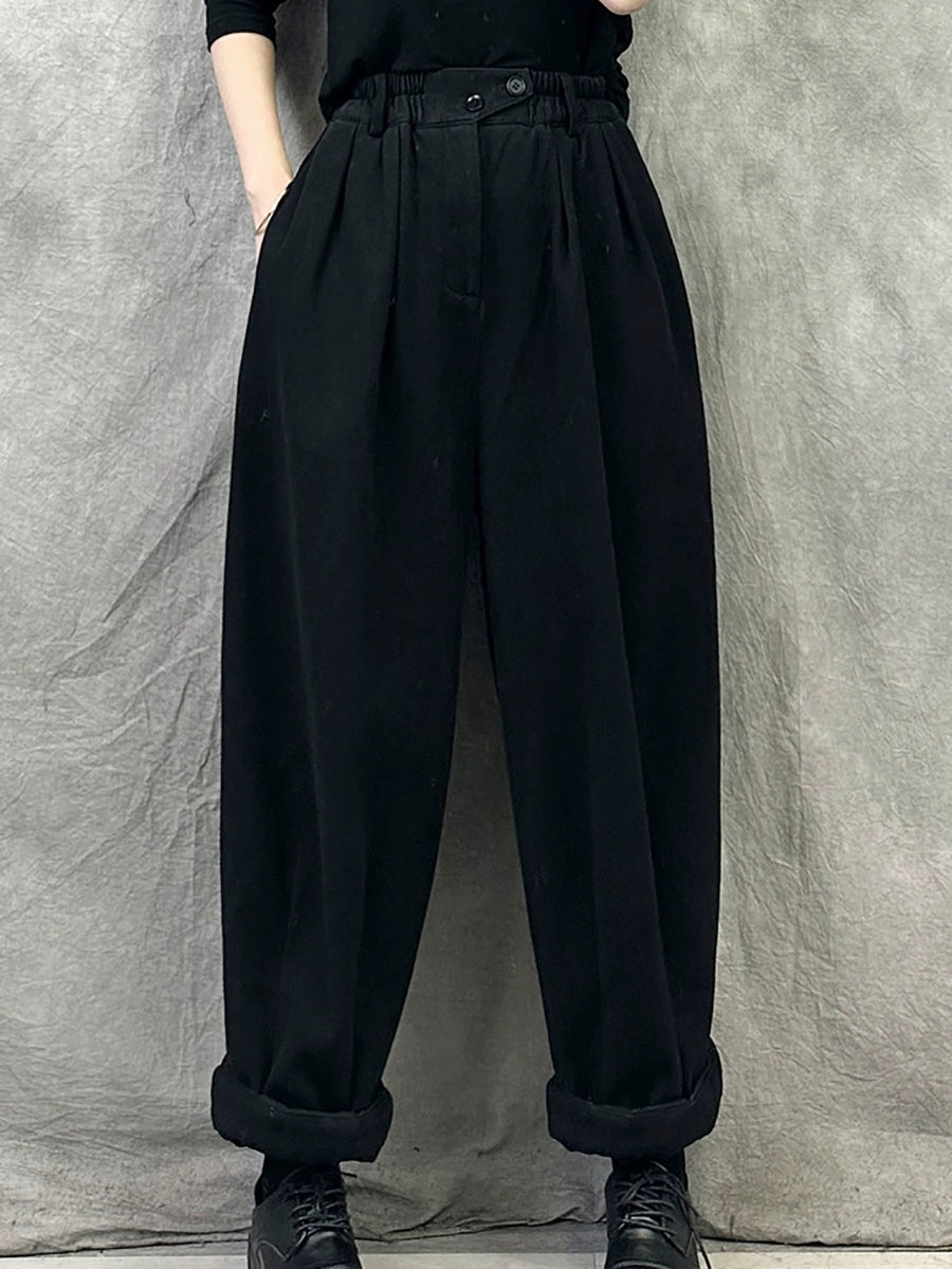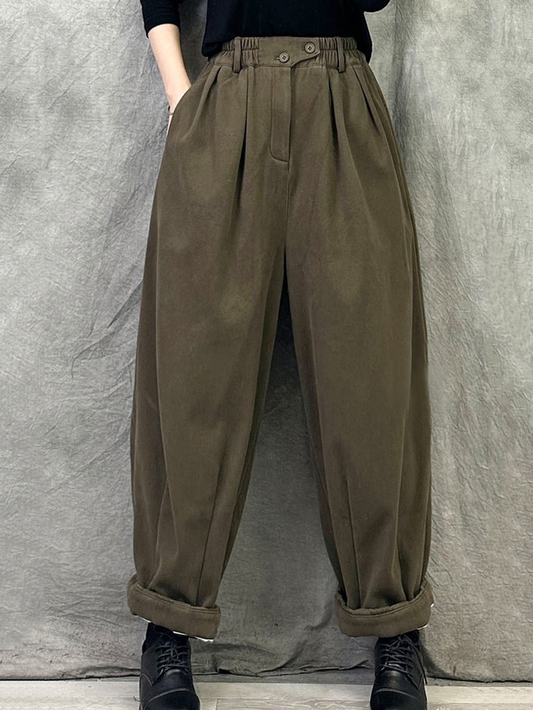 Women Winter Casual Pure Color Fleece-lined Harem Pants