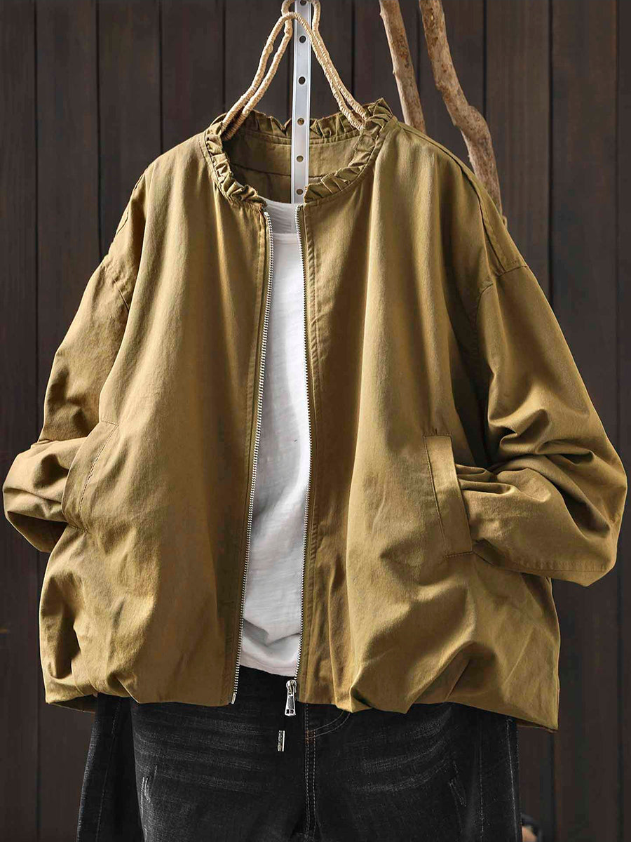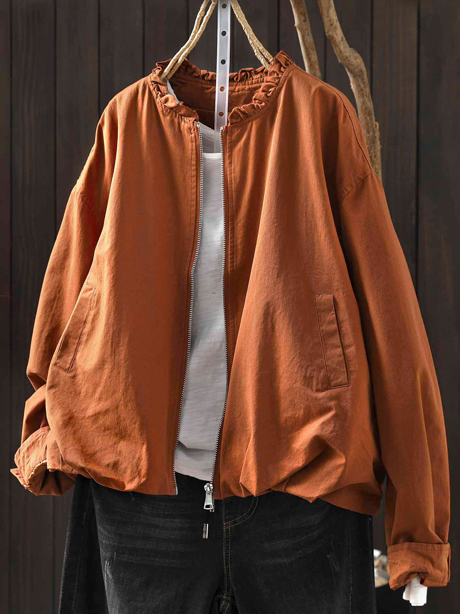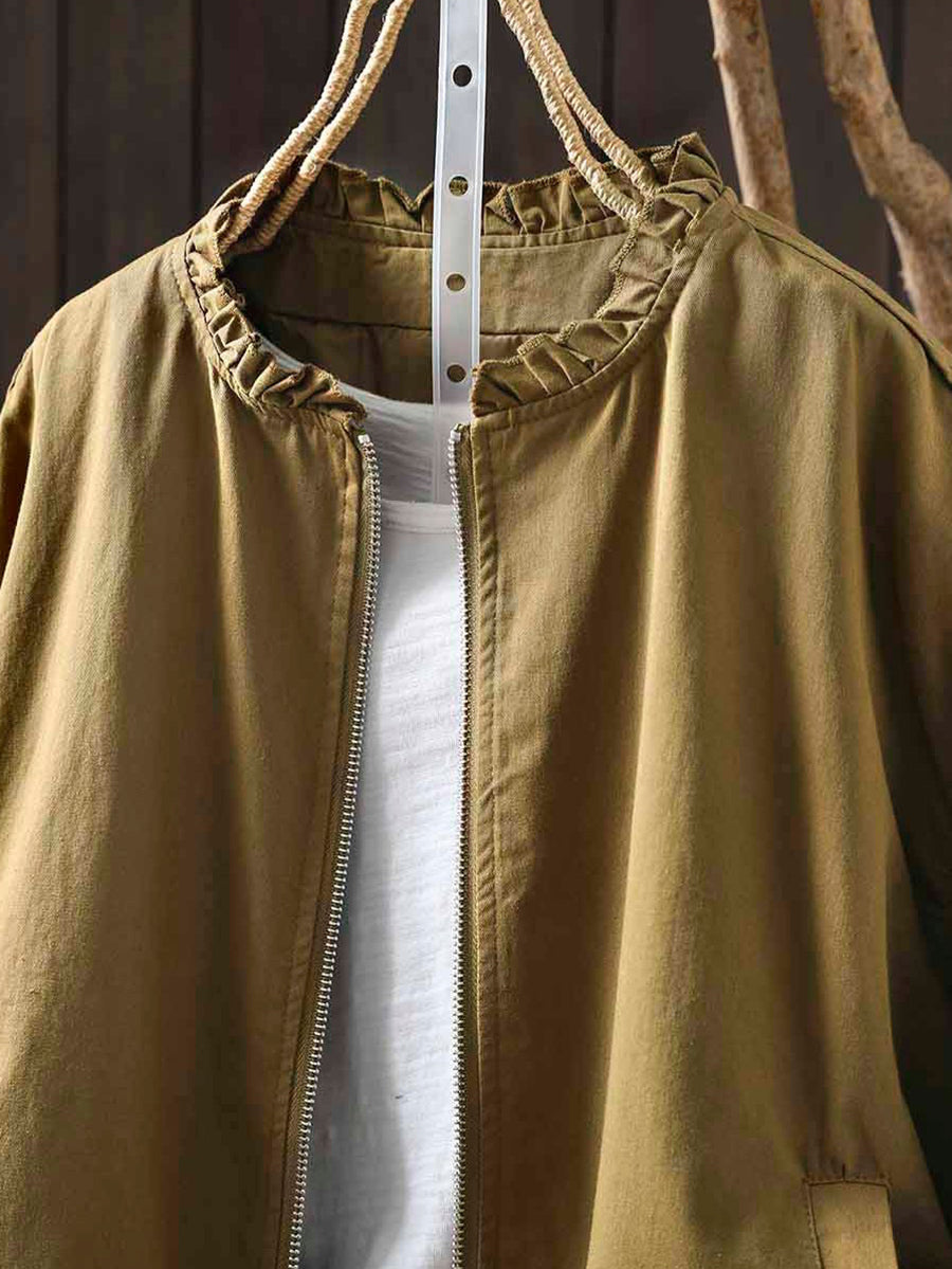 Women Spring Pure Color Stand Collar 100%Cotton Coat