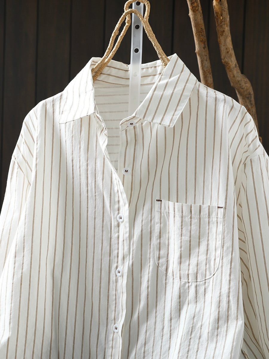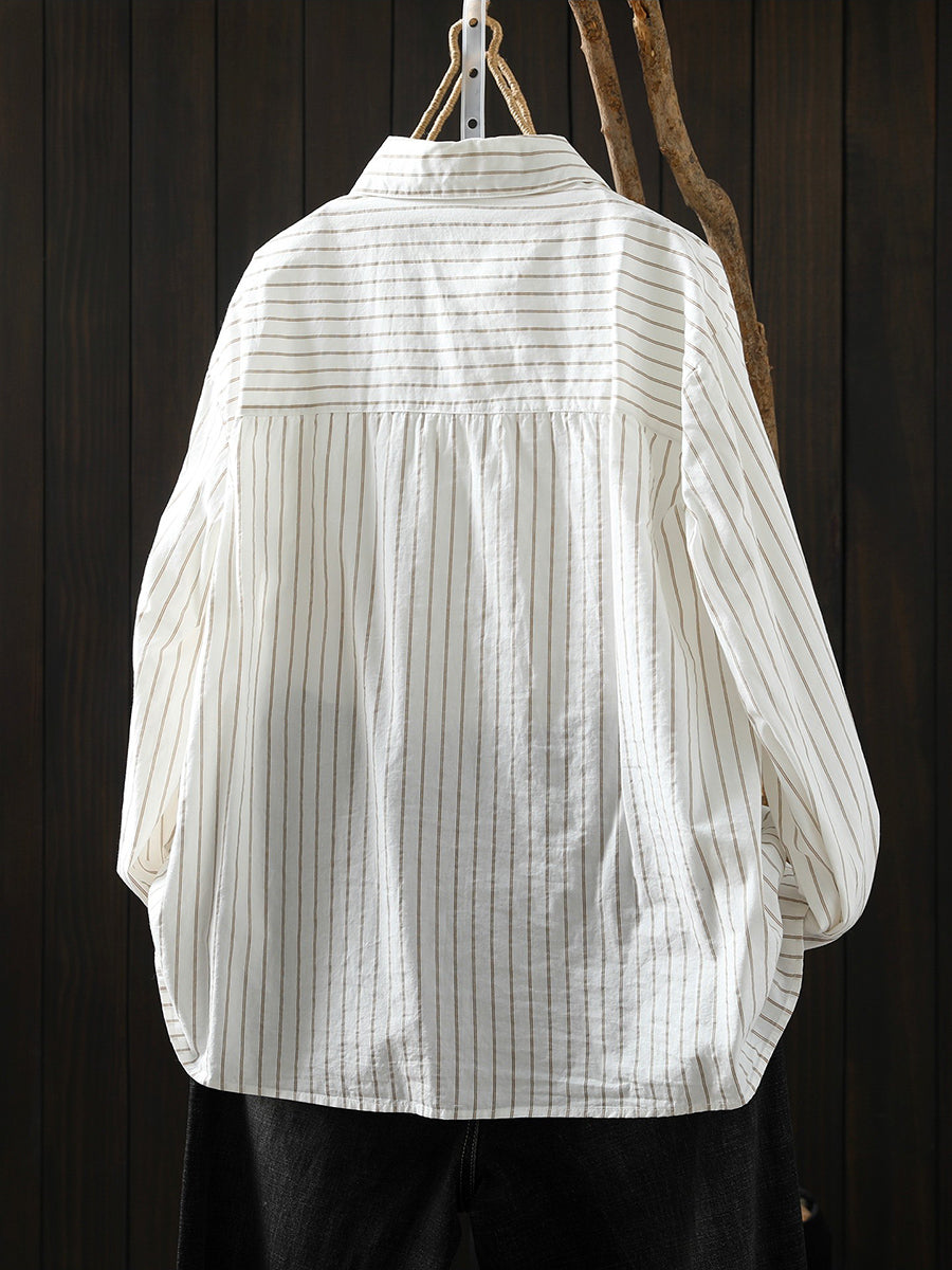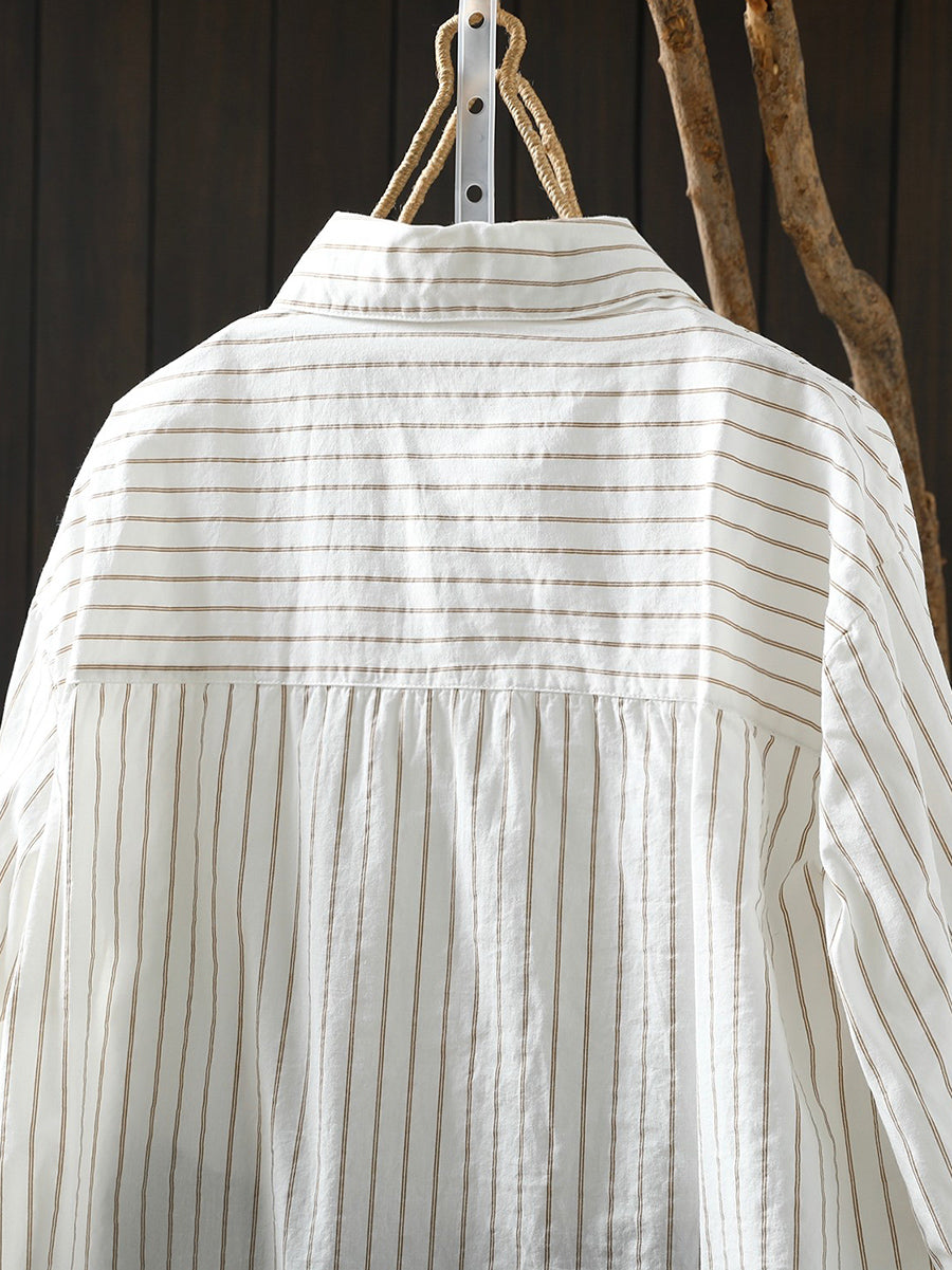 Women Spring Artsy Stripe 100%Cotton Shirt