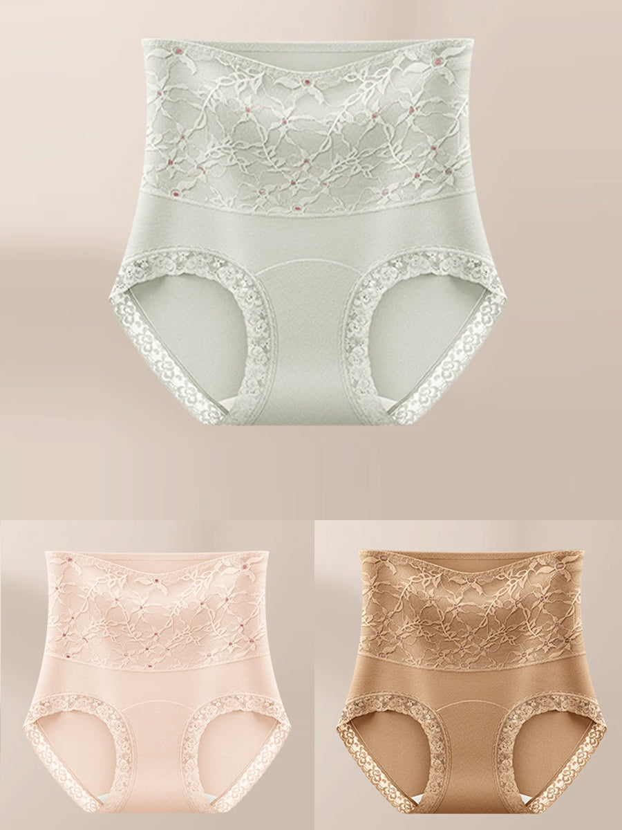 3 Pieces Women Artsy Flower High Waist Underwear