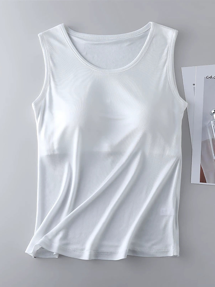 Women Pure Color O-Neck With Bra Pads Base Vest