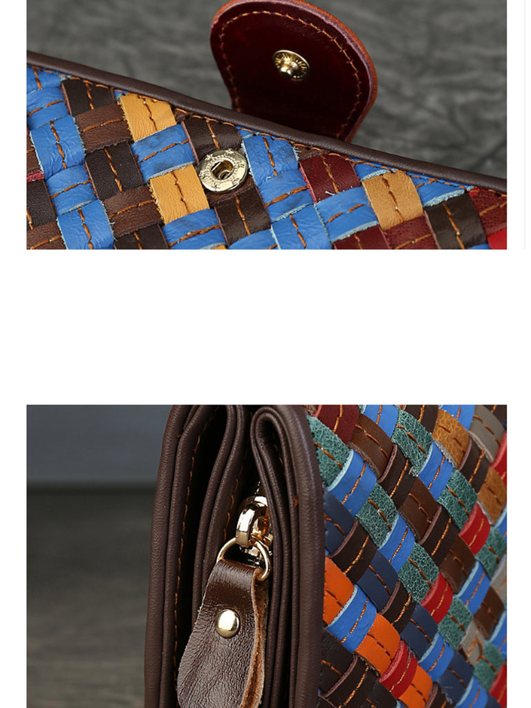 Colorful Leather Weave Multifunction Wallet