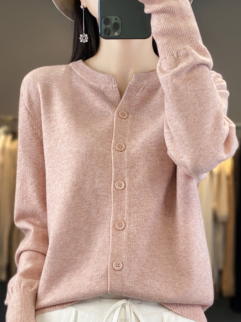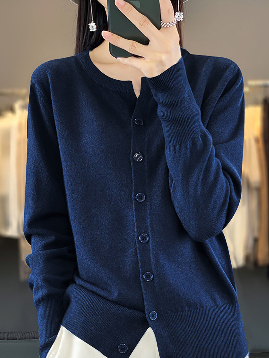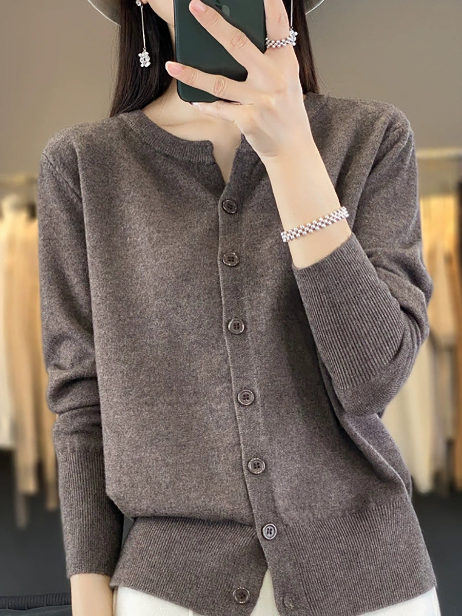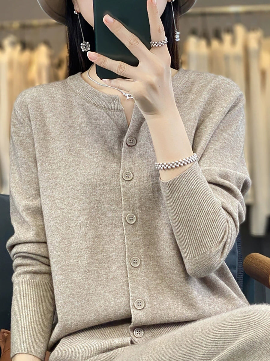 Women Winter Casual Pure Color Knitted O-Neck Sweater