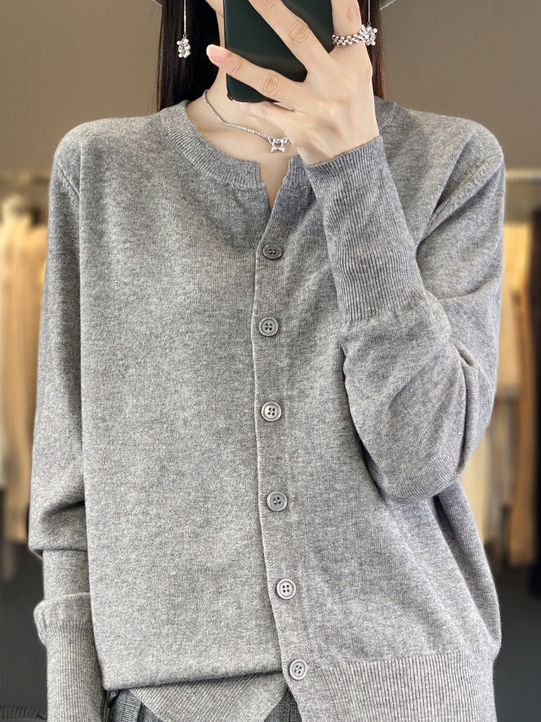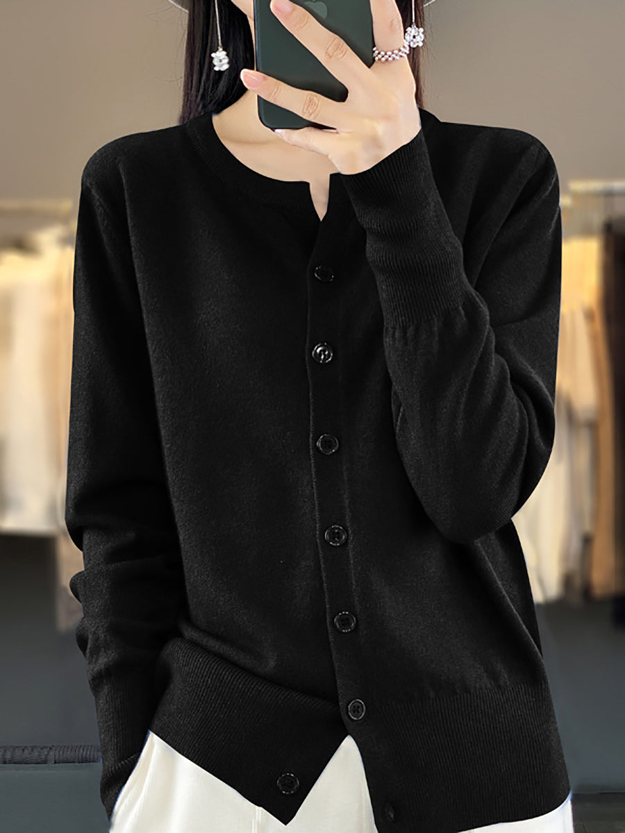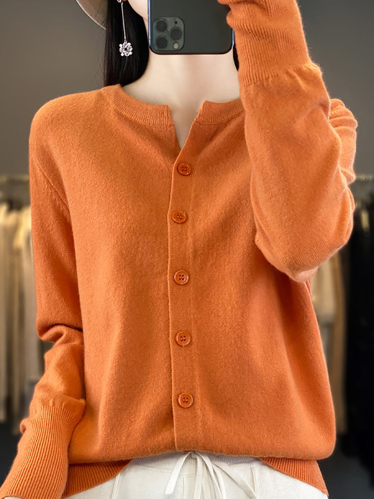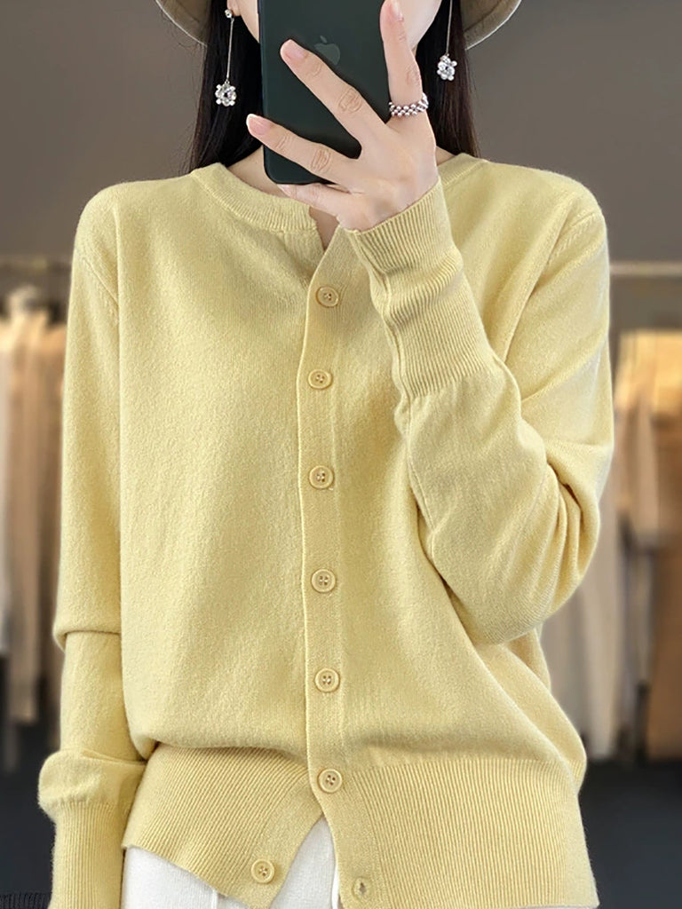 Women Winter Casual Pure Color Knitted O-Neck Sweater