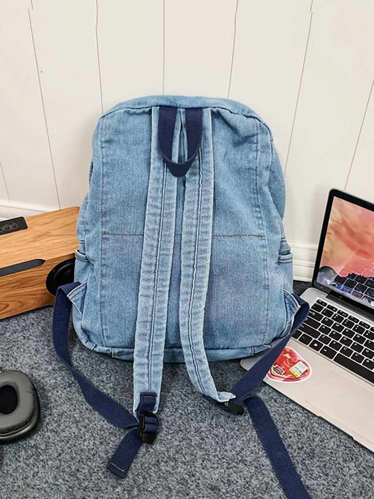 Women Casual Solid Large Capacity School Denim Backpack