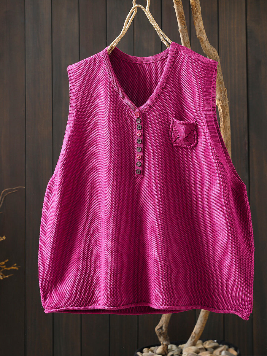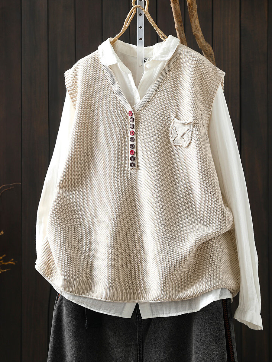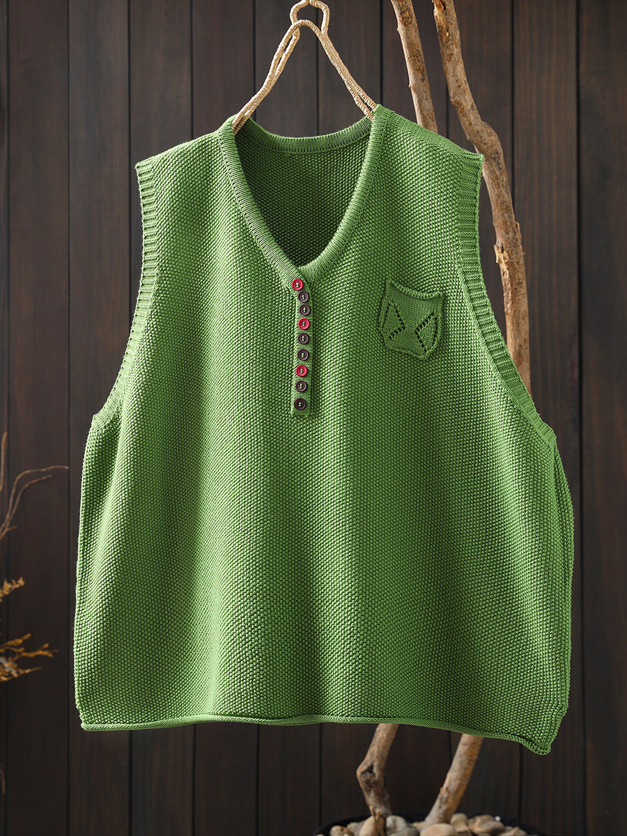 Women Spring Artsy Knitted V-Neck Vest