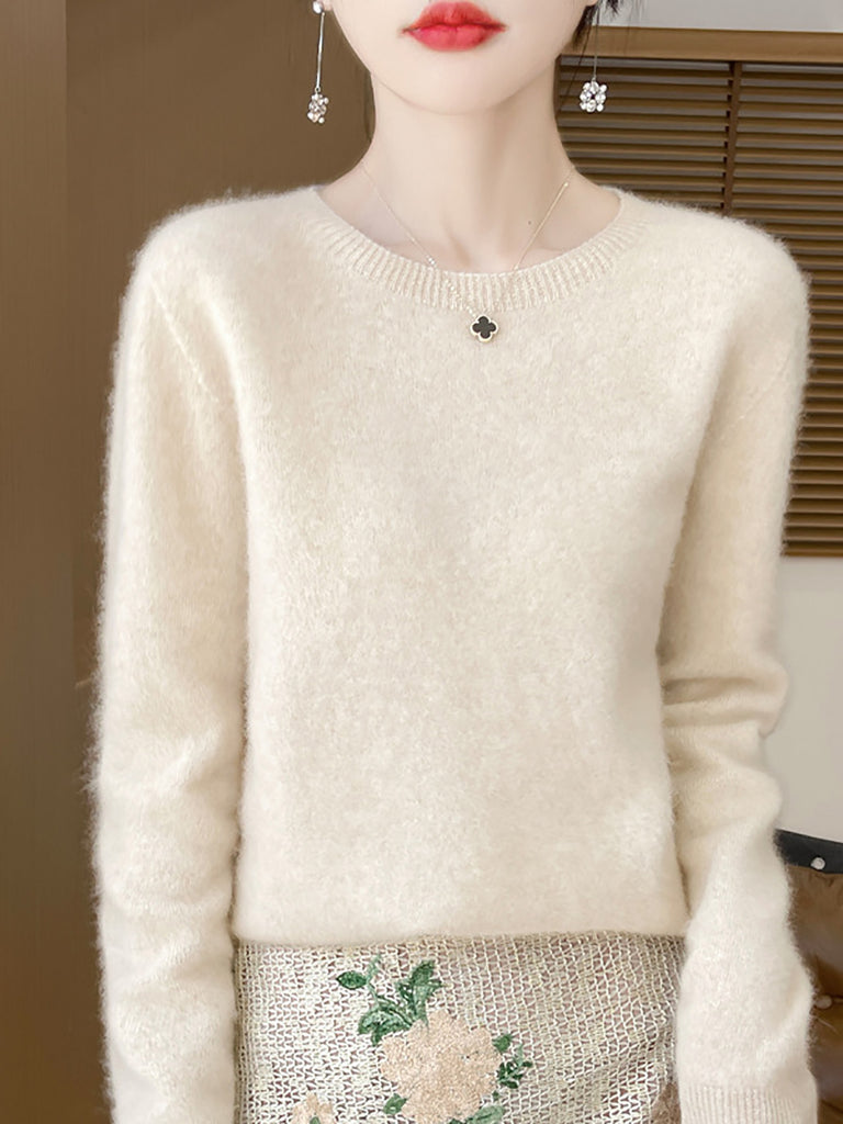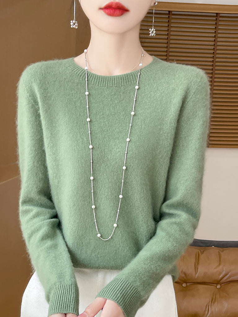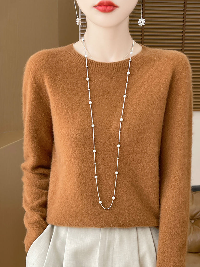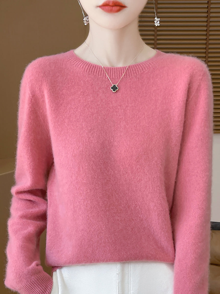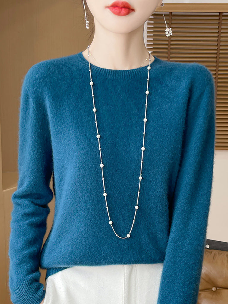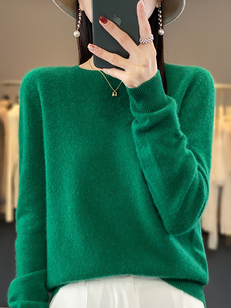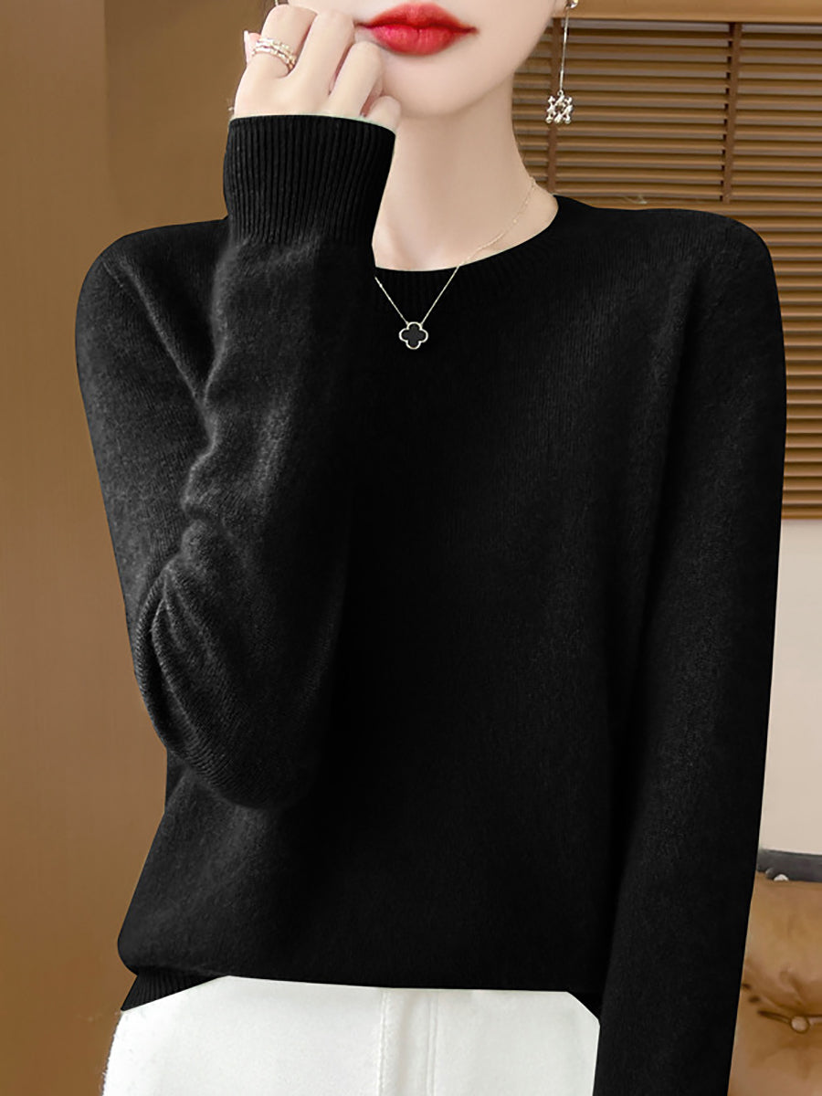 Women Winter Pure Color O-Neck Wool Sweater