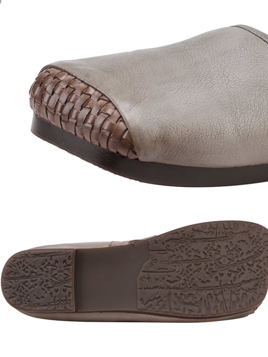 Women Autumn Soft Leather Square Toe Low Heel Shoes