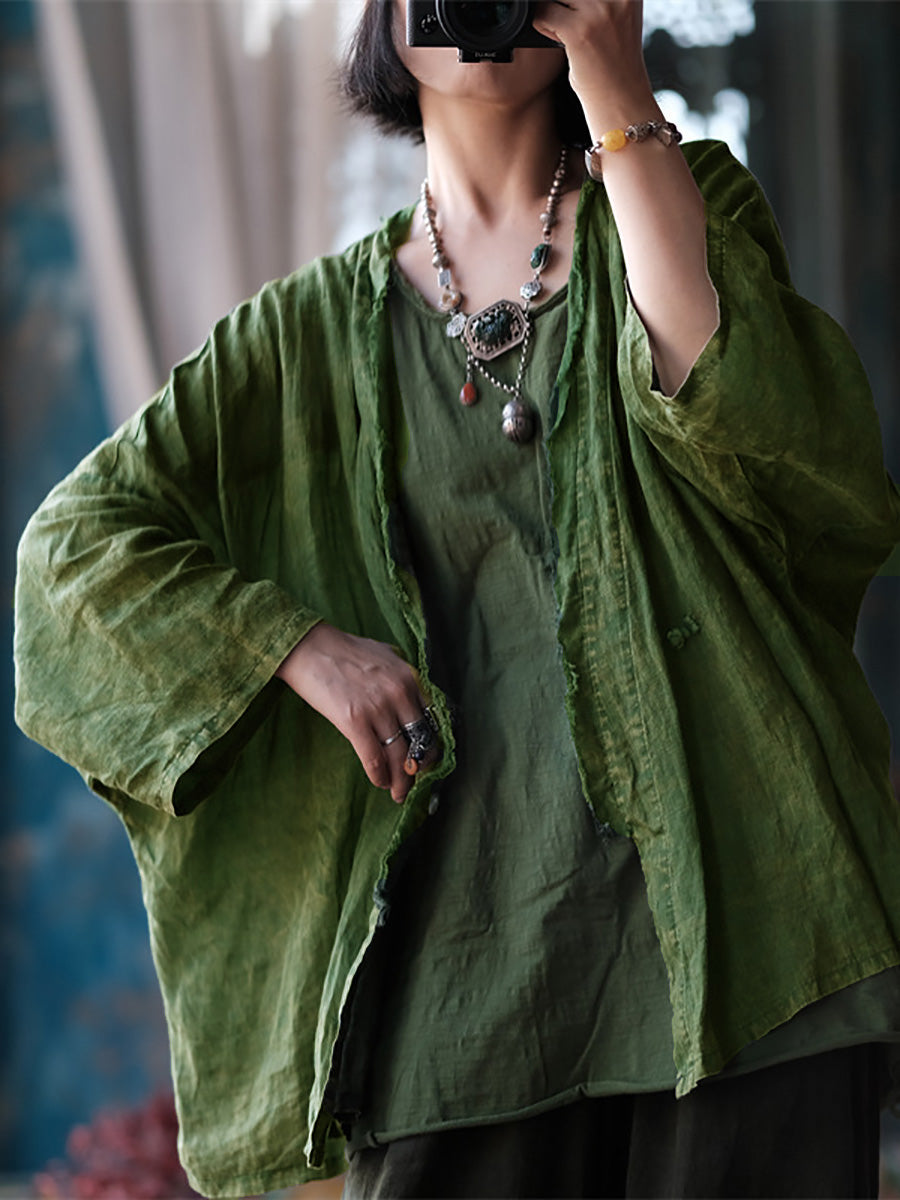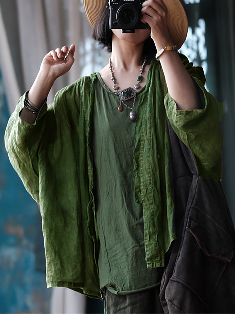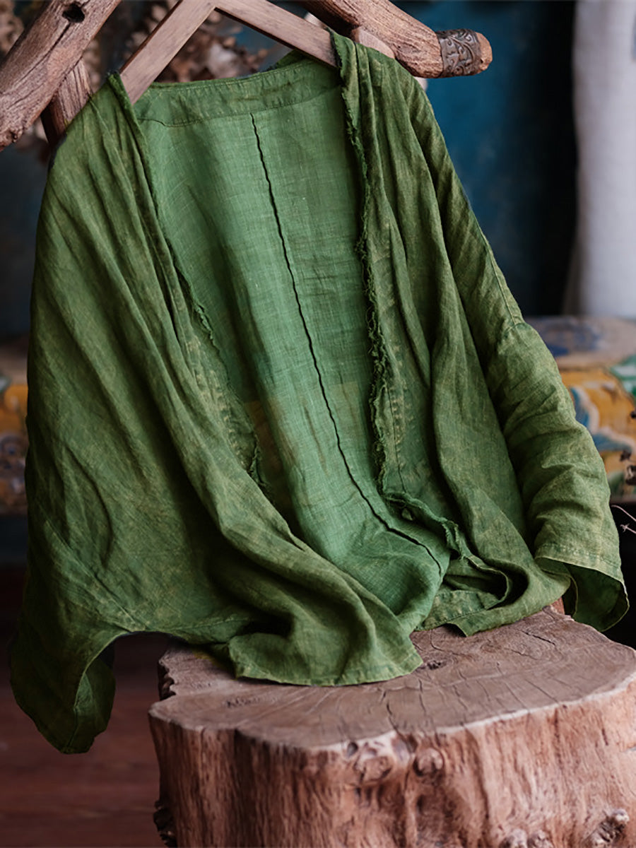 Women Summer Retro Worn Raw-edge Ramie Shirt Coat