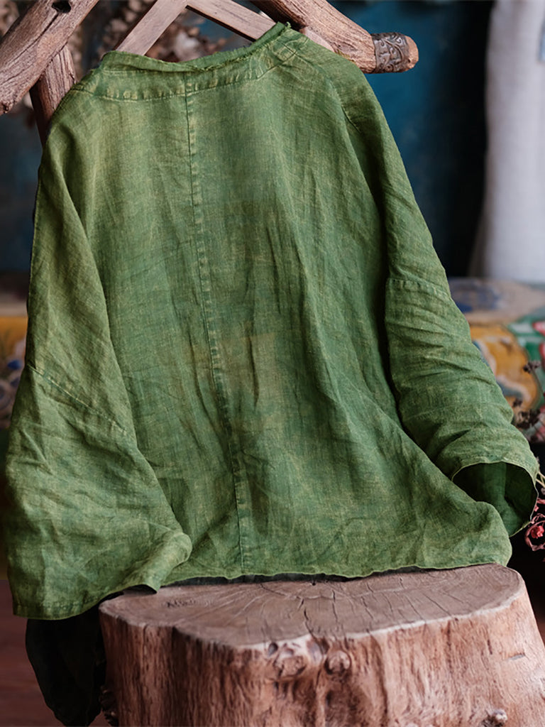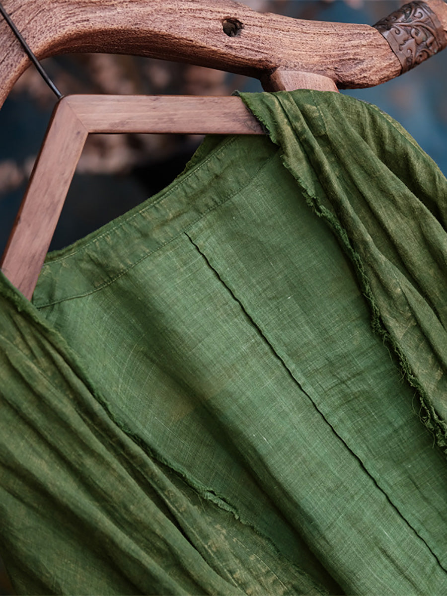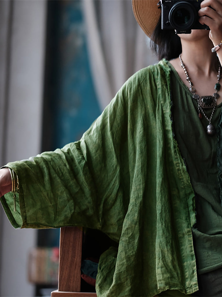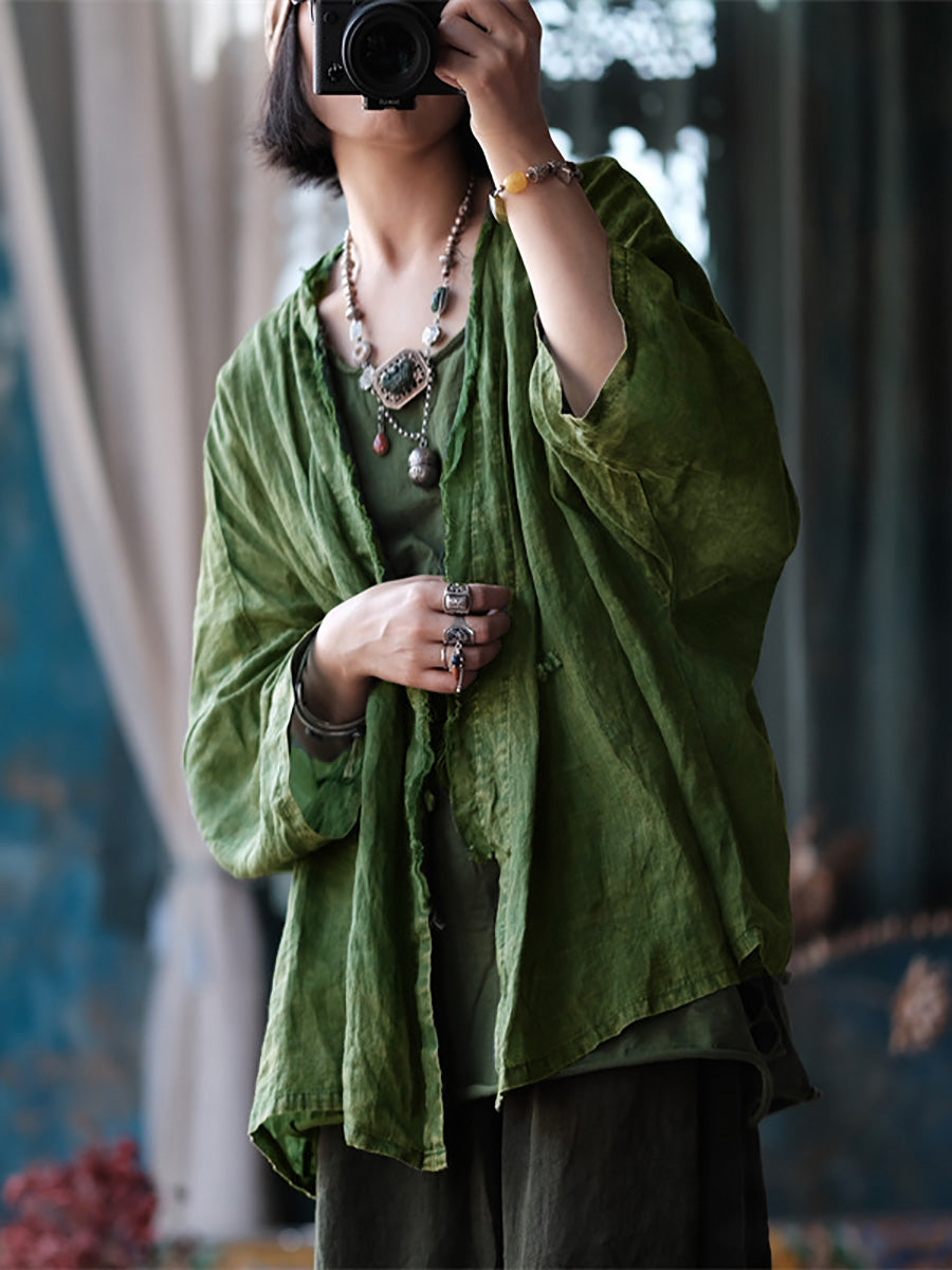 Women Summer Retro Worn Raw-edge Ramie Shirt Coat