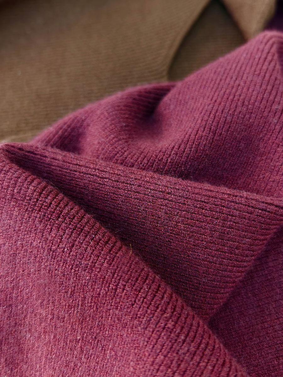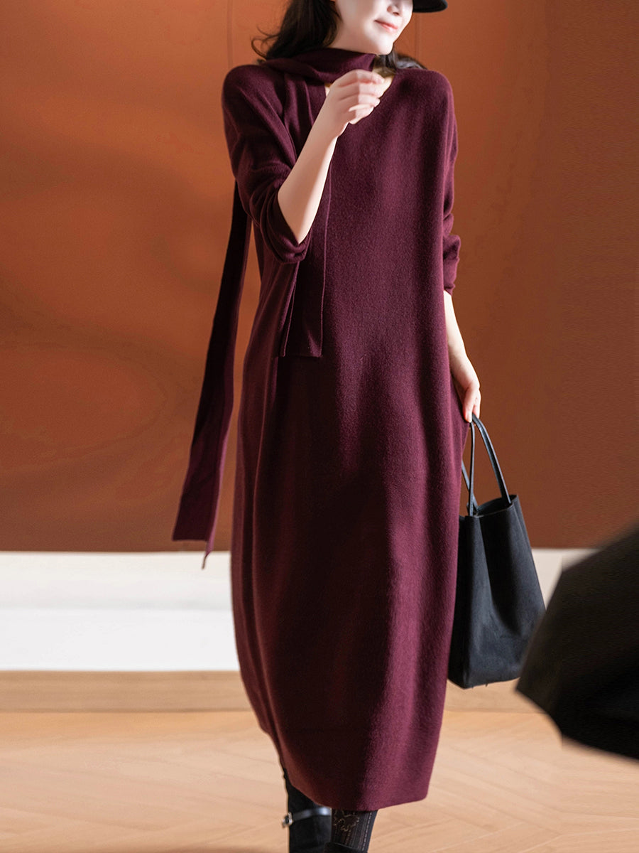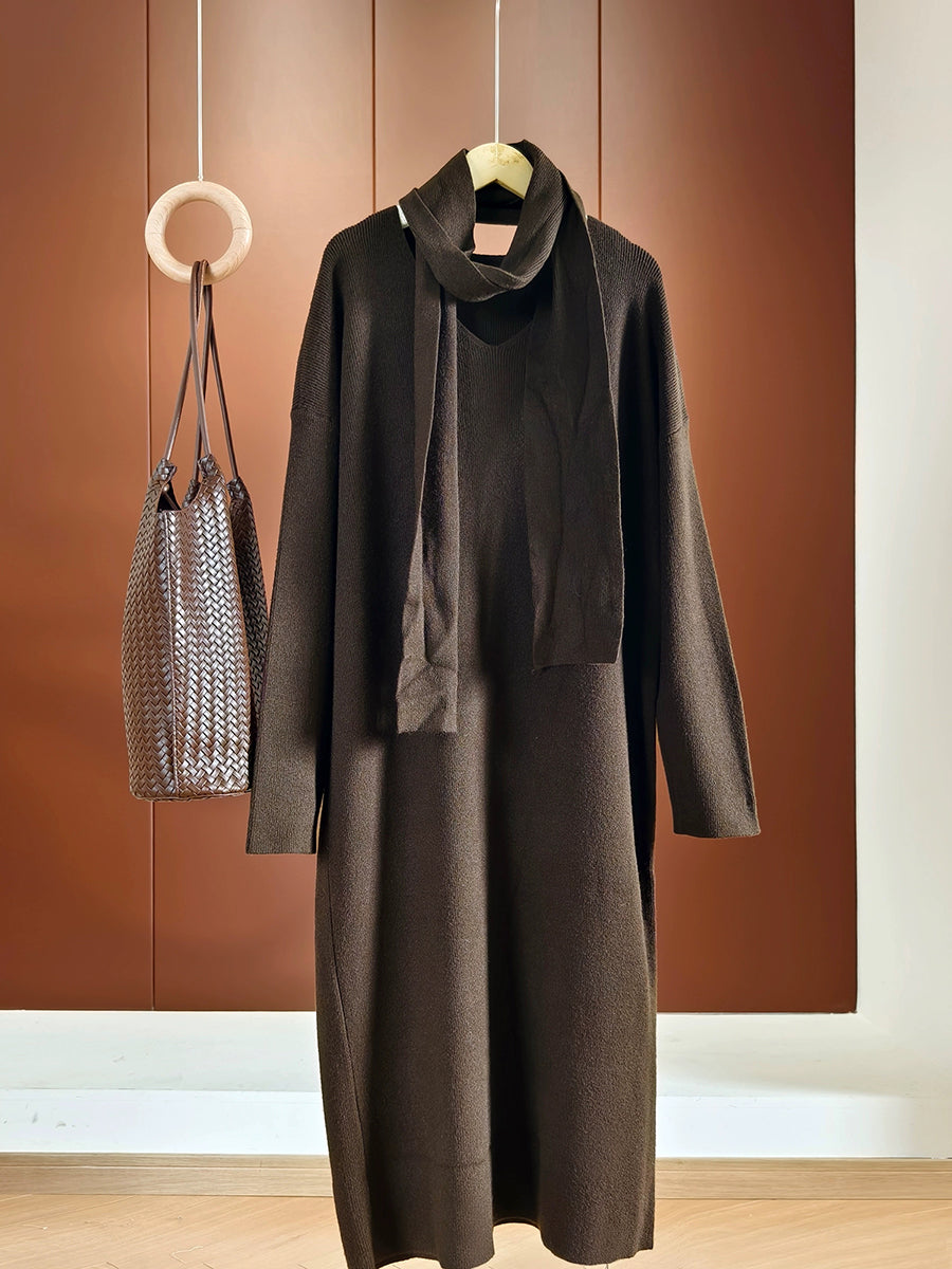 Women Autumn Casual Pure Color Knitted V-Neck Dress