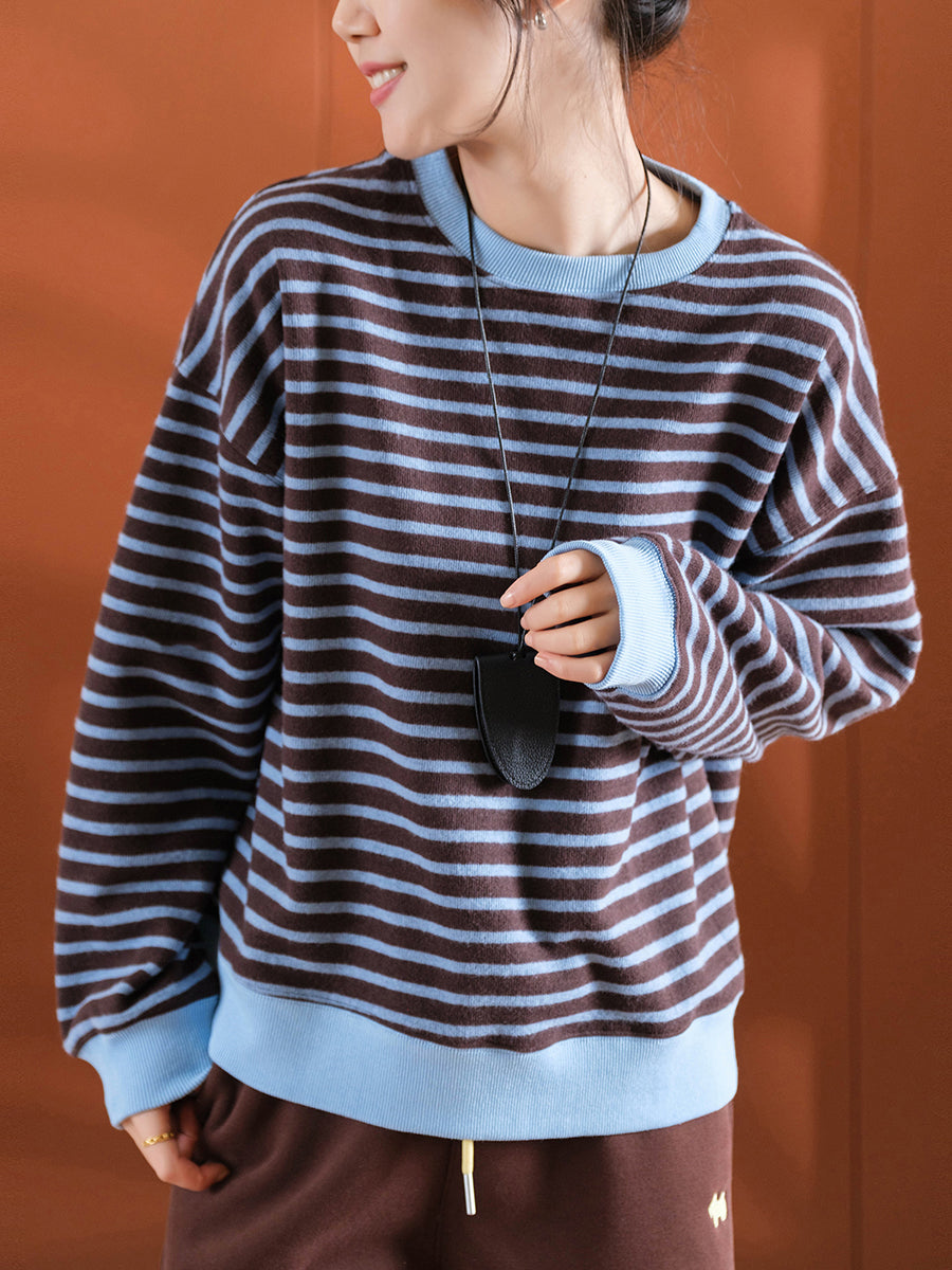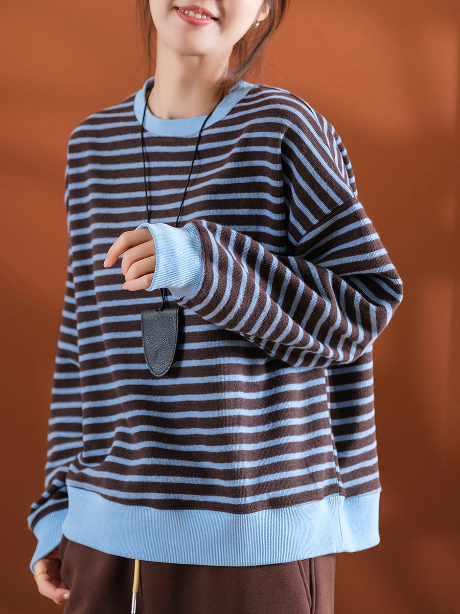 Women Casual Winter Stripe Blouse