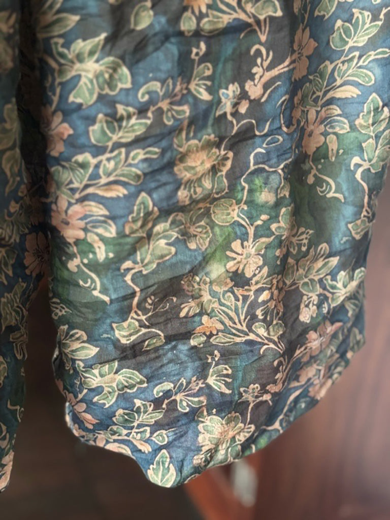 Women Summer Retro Flower Ramie Wide-leg Pants