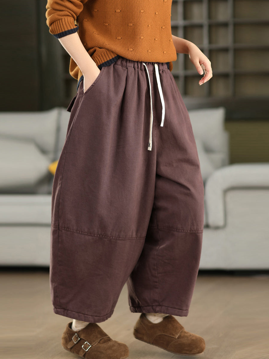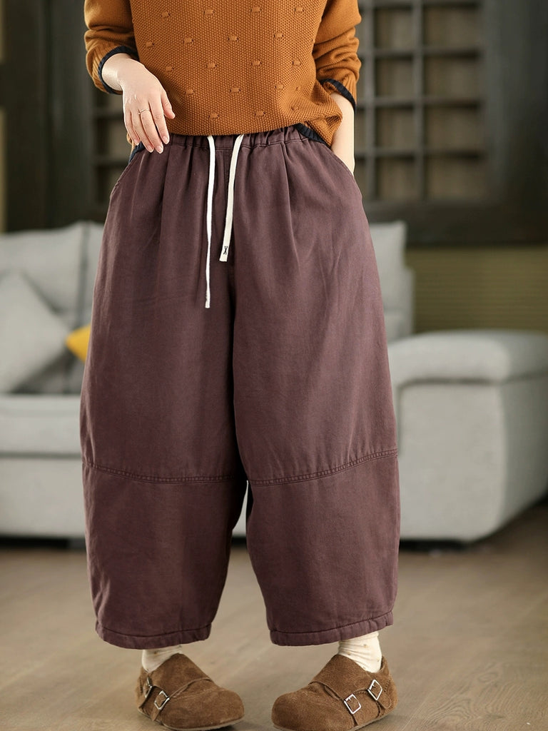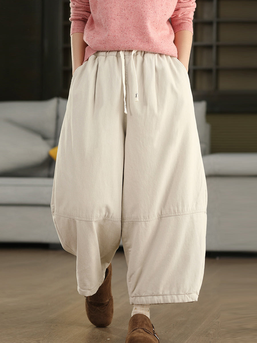 Women Winter Pure Color 100%Cotton Padded Harem Pants