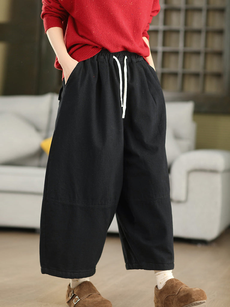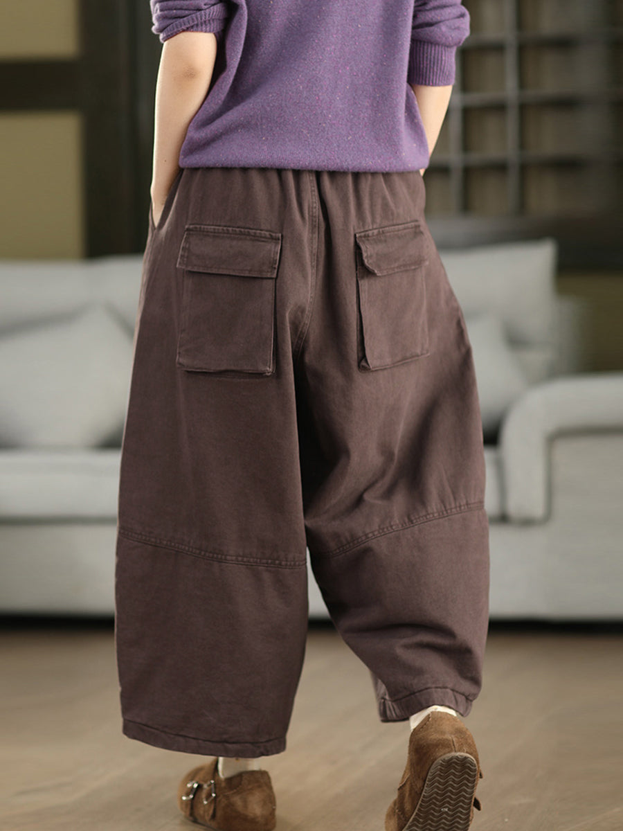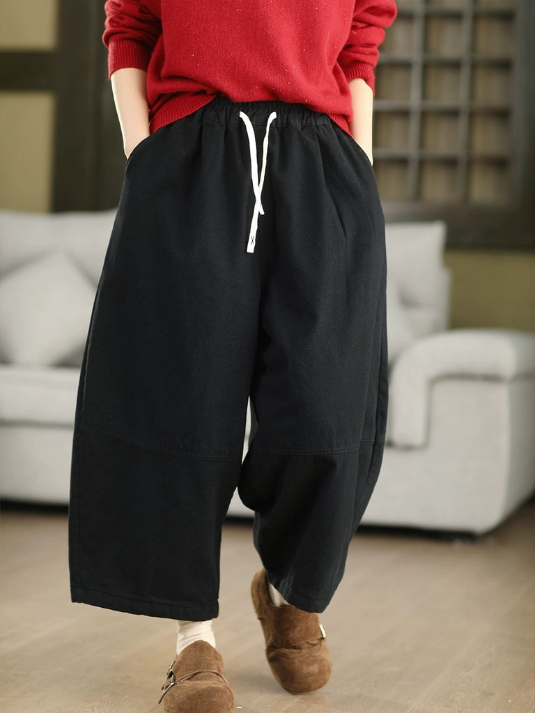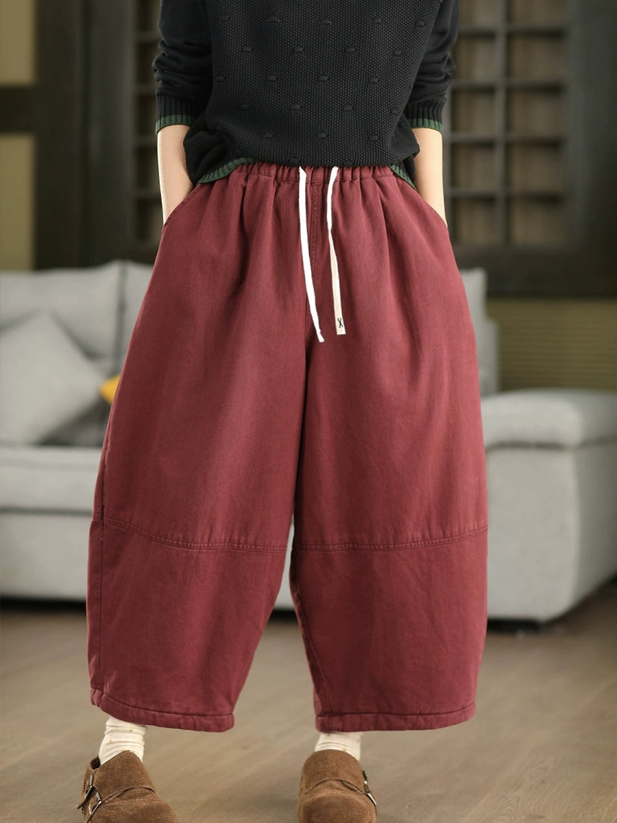 Women Winter Pure Color 100%Cotton Padded Harem Pants