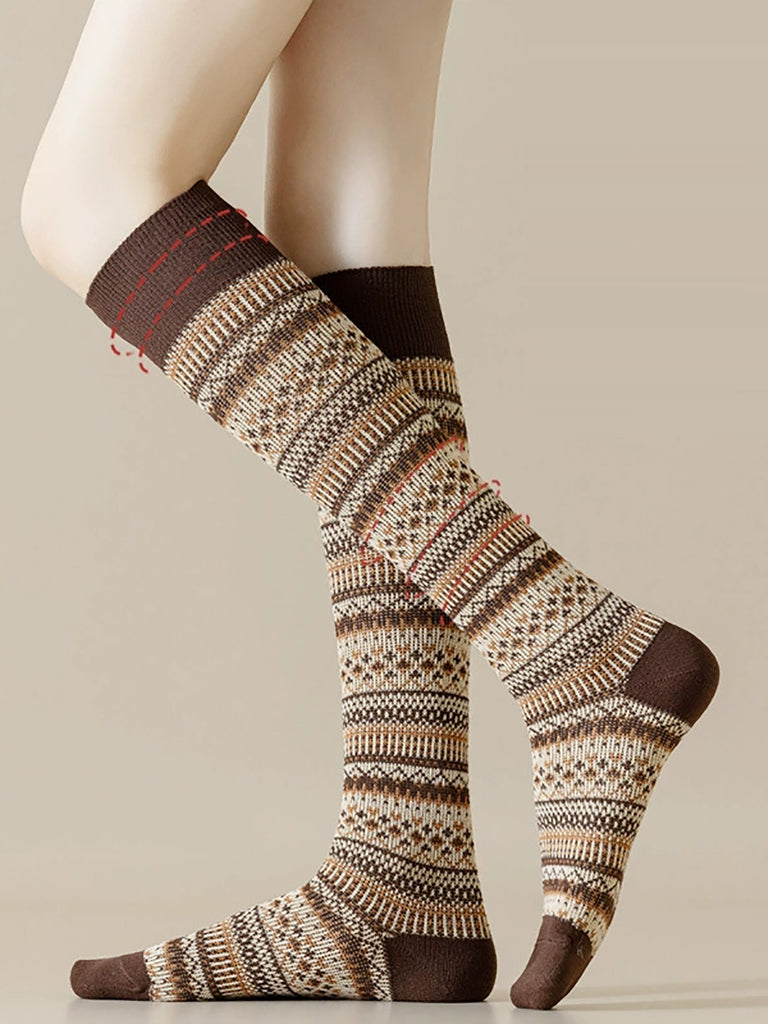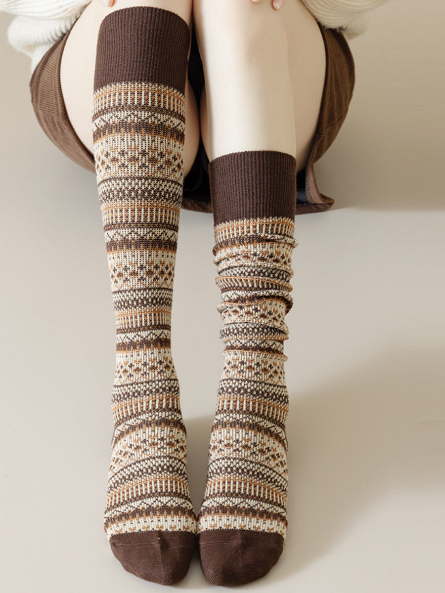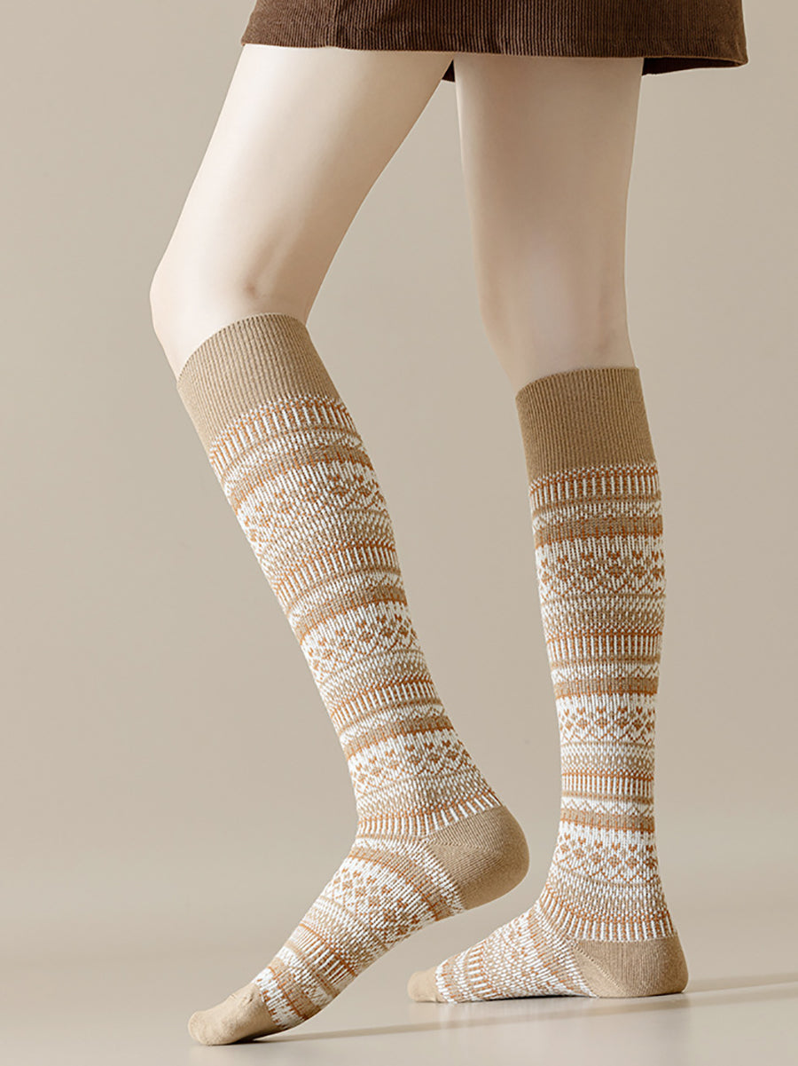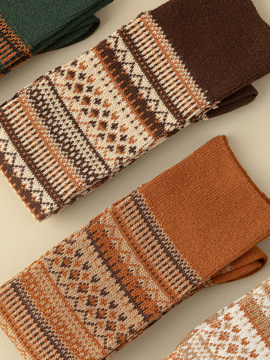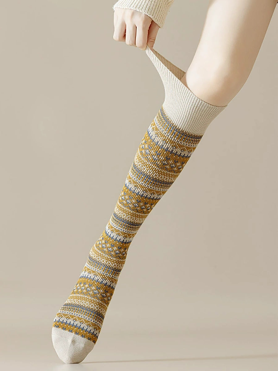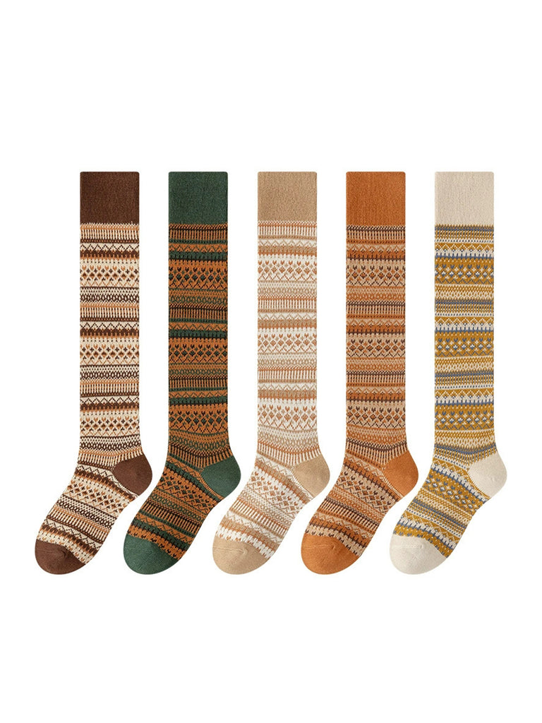 5 Pairs Women Winter Stripe Cotton Long Socks