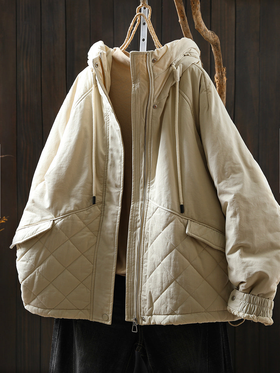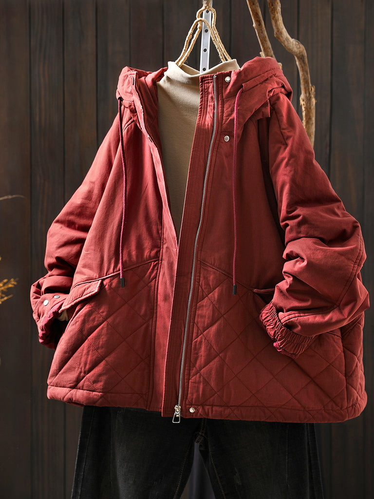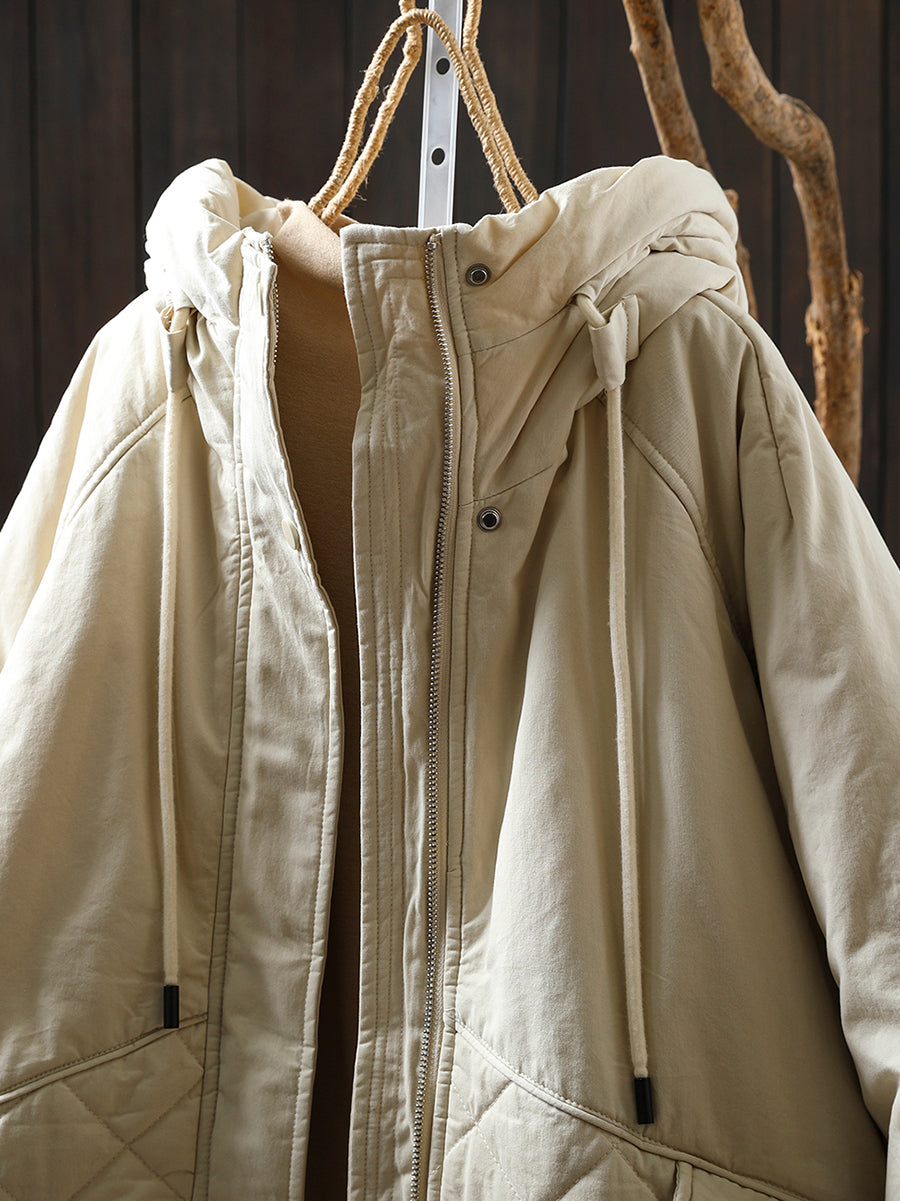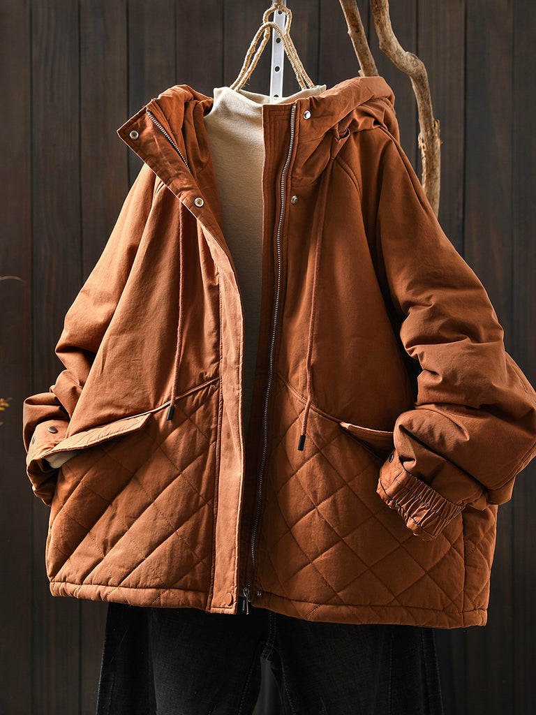 Women Winter Casual Pure Color Padded Hooded Coat