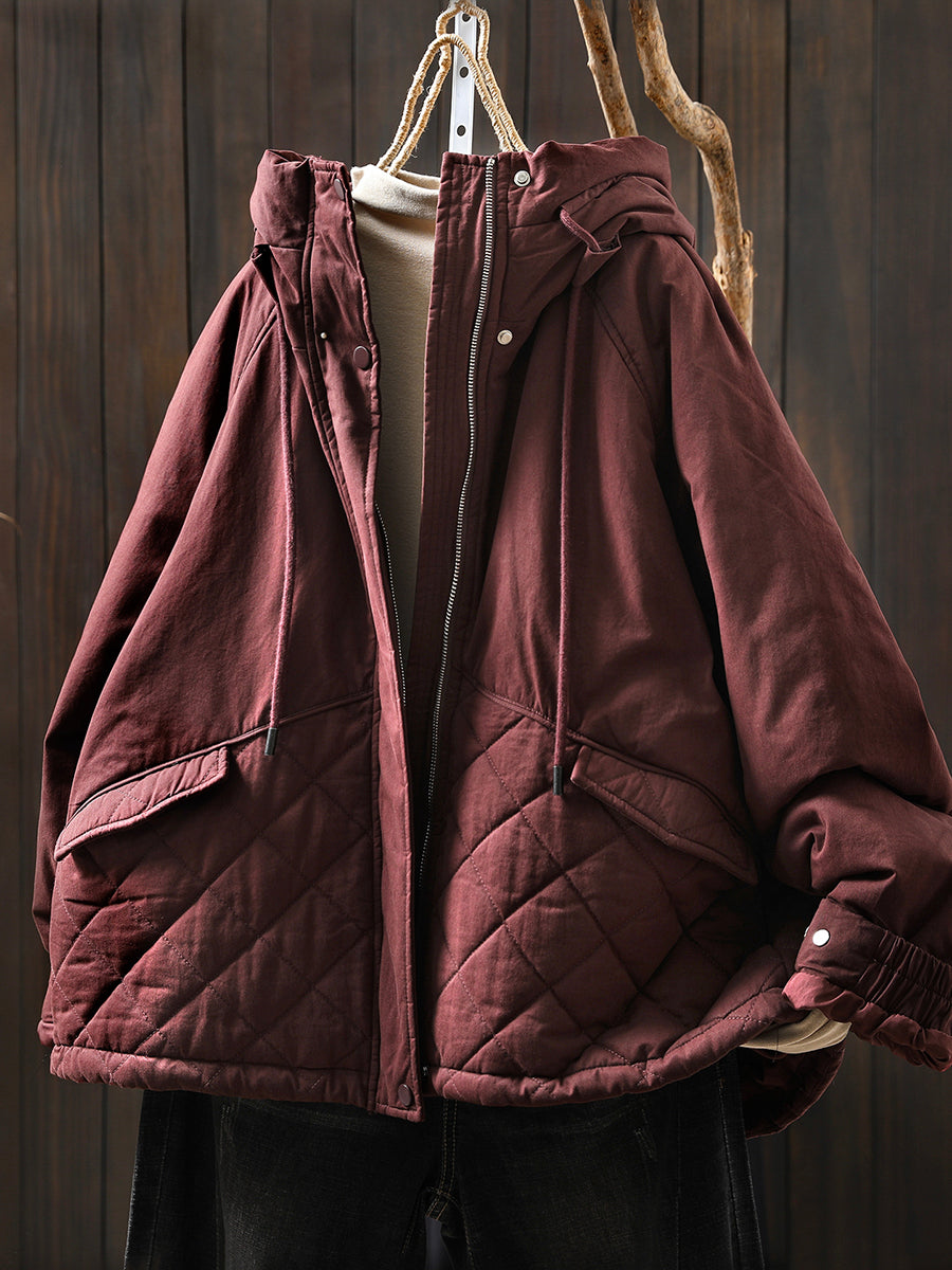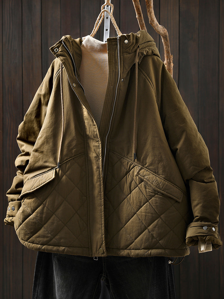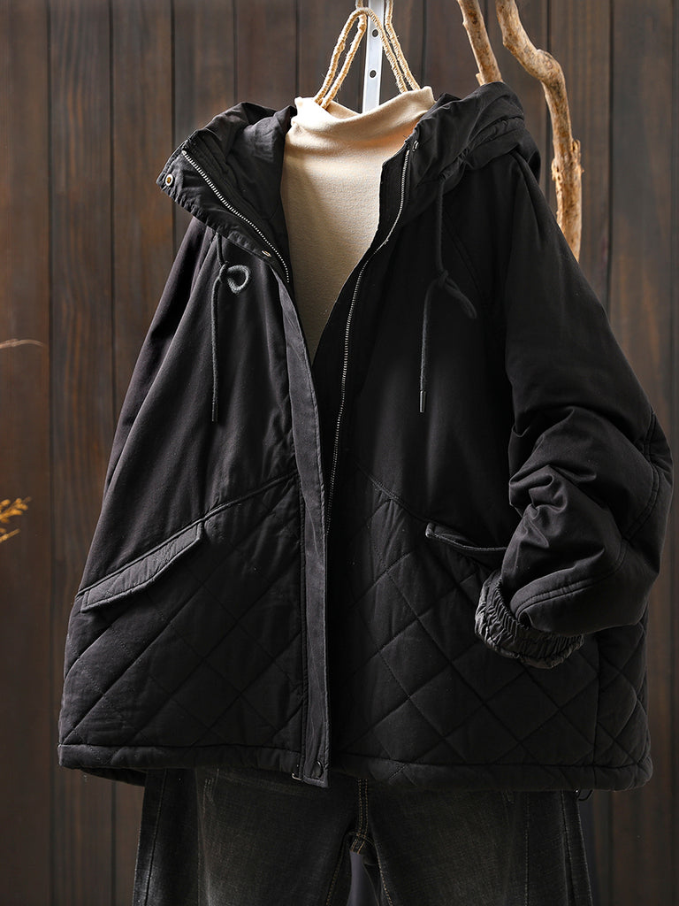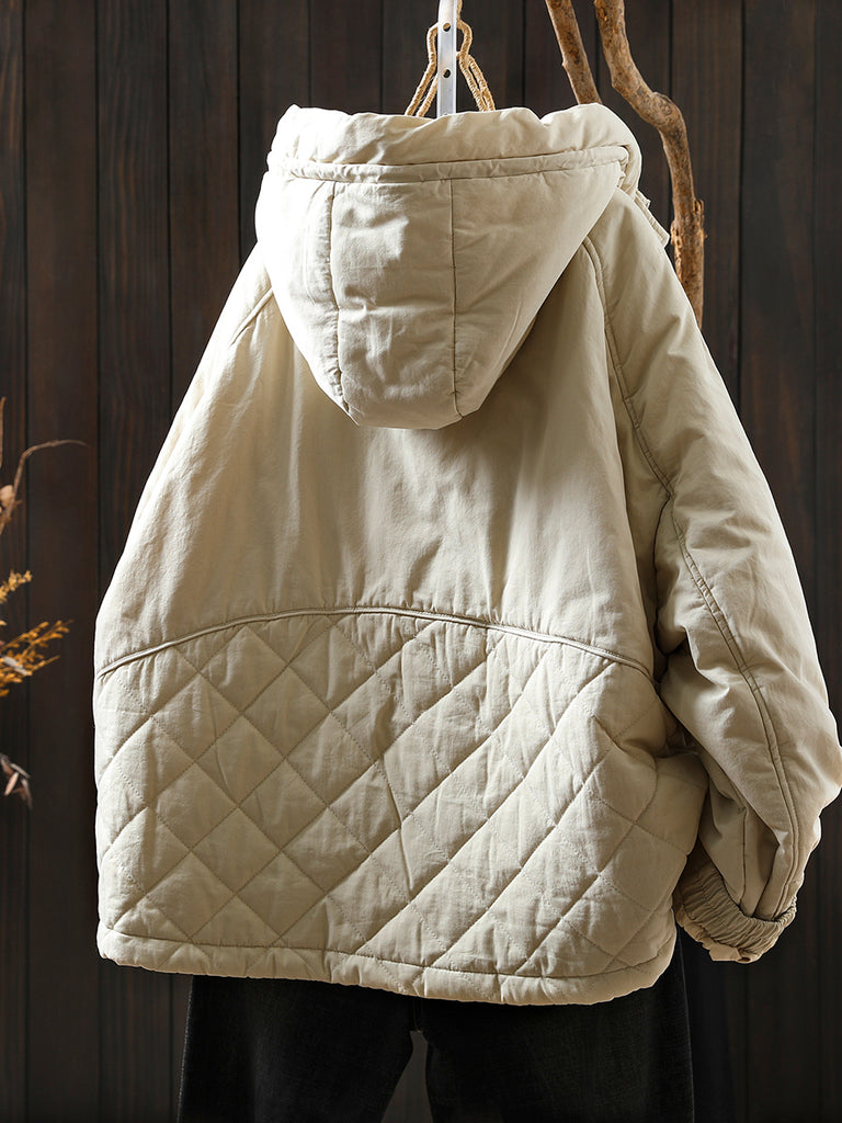 Women Winter Casual Pure Color Padded Hooded Coat