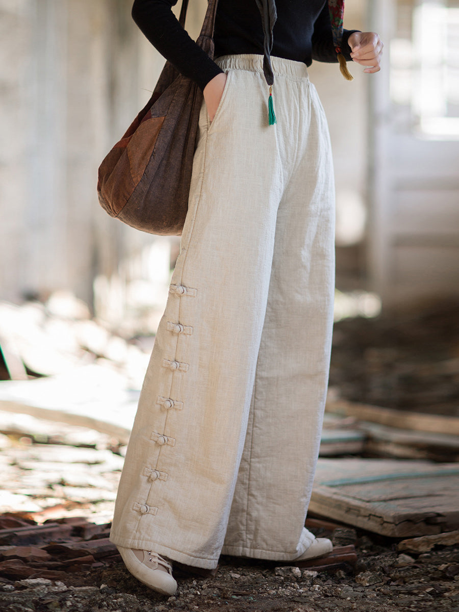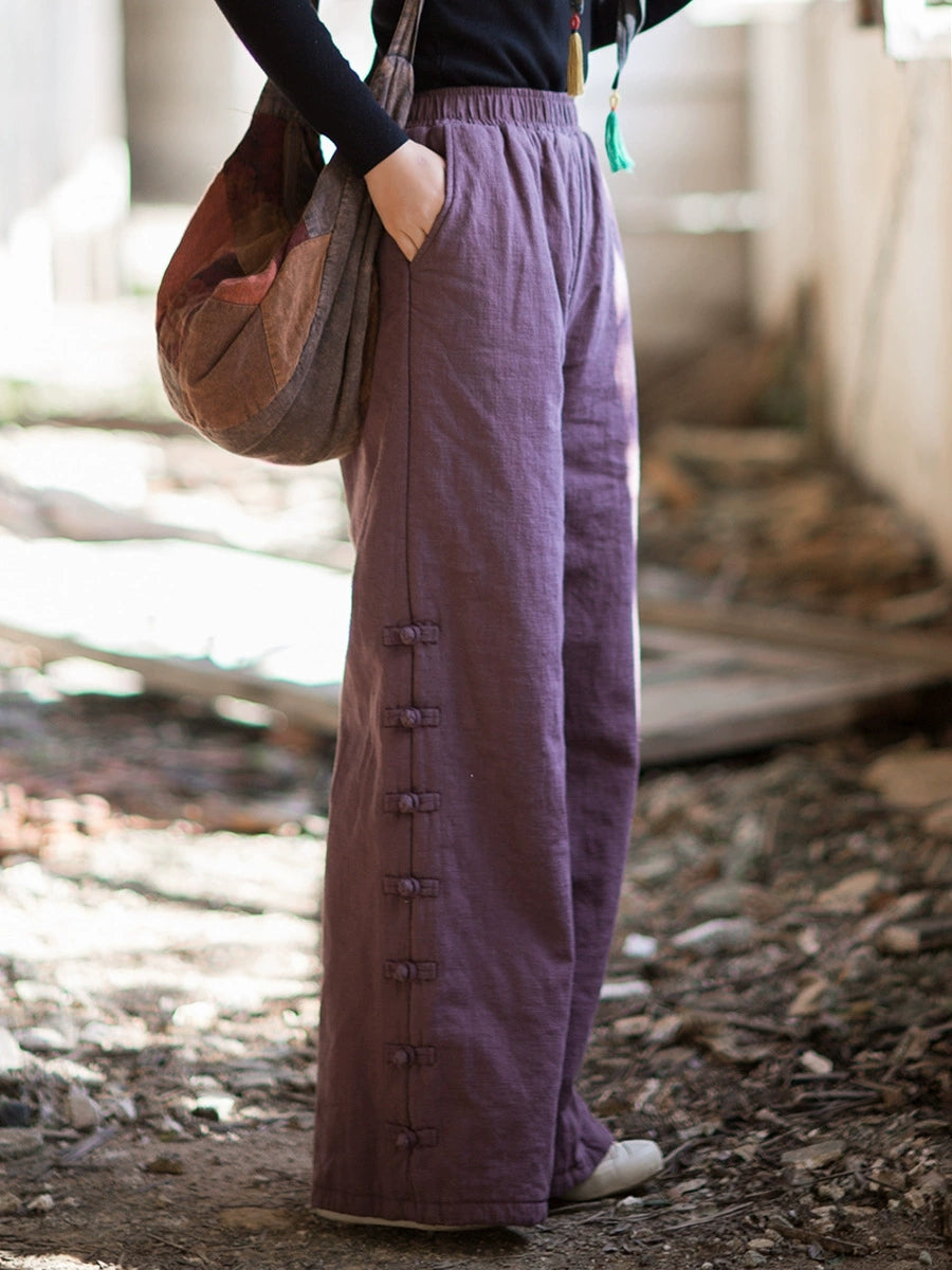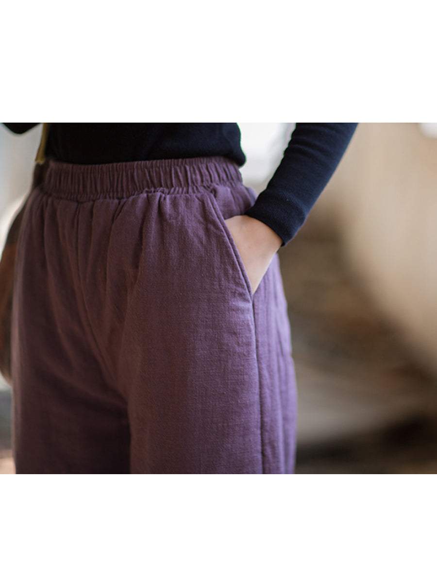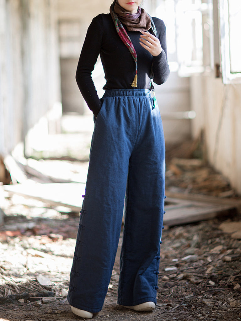 Women Winter Ethnic Pure Color Padded Straight Pants