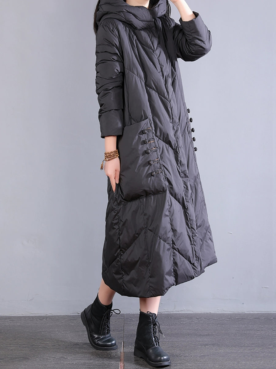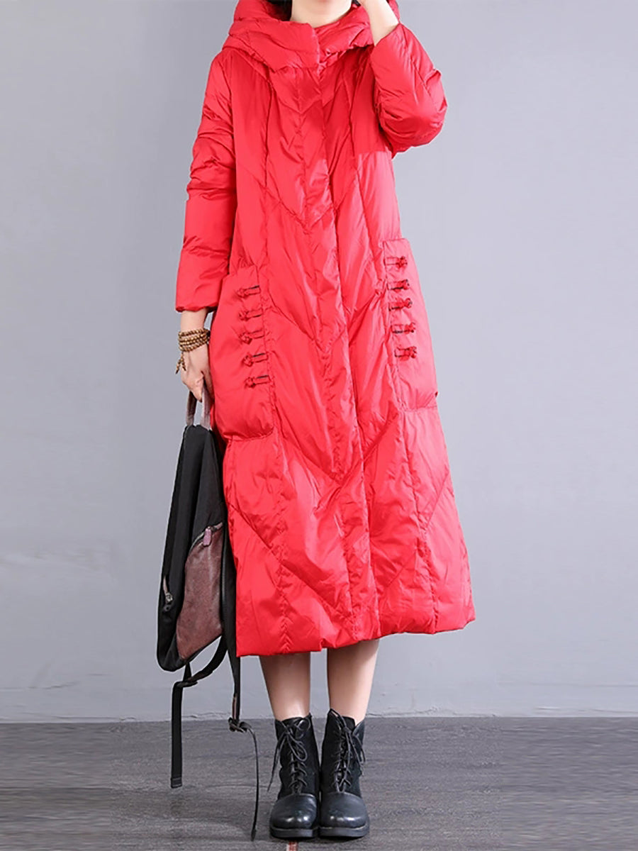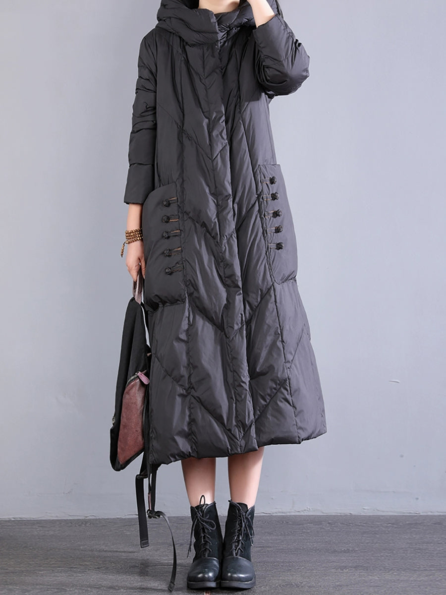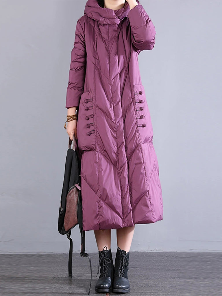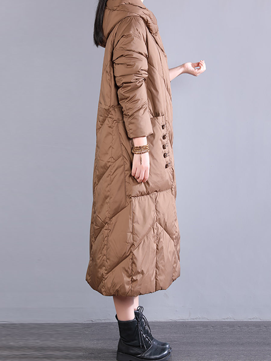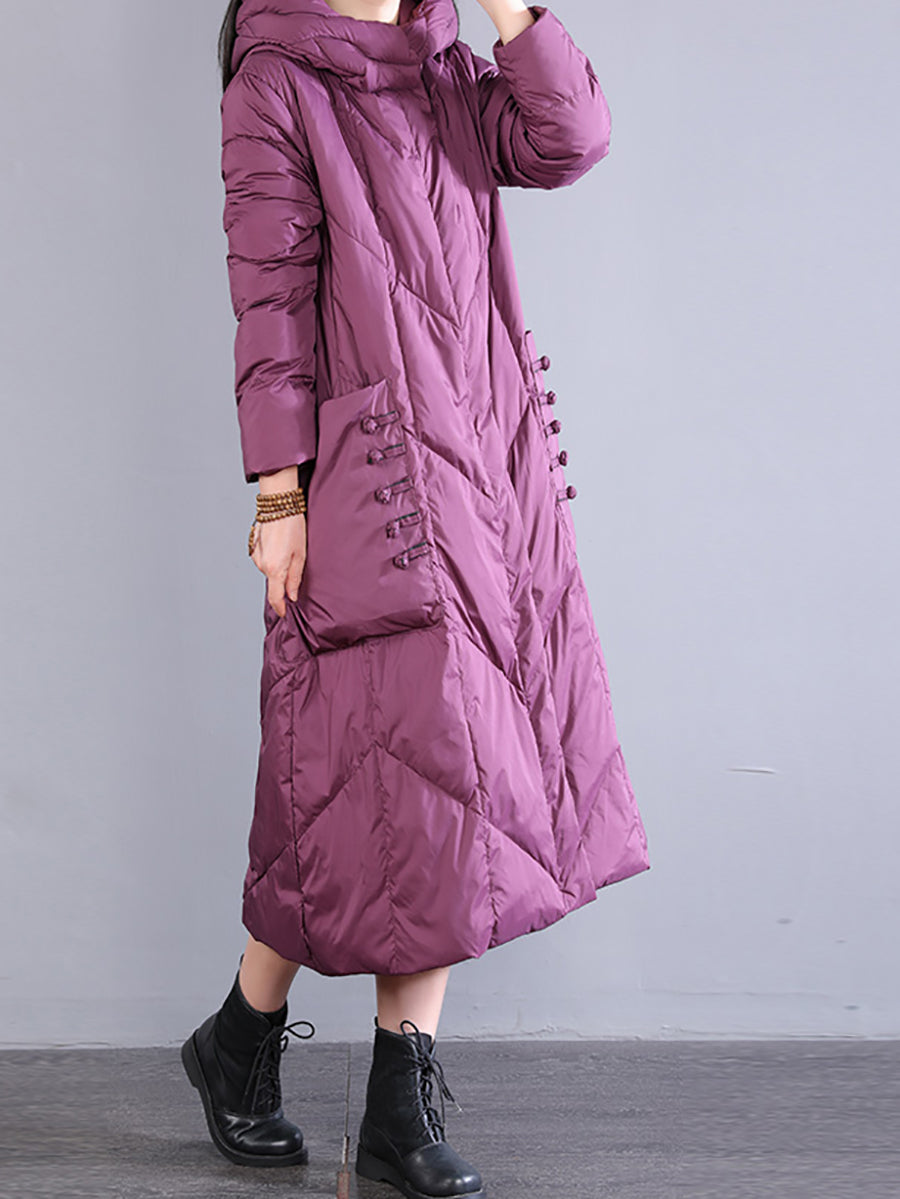 Women Winter Retro Hooded Long Down Coat
