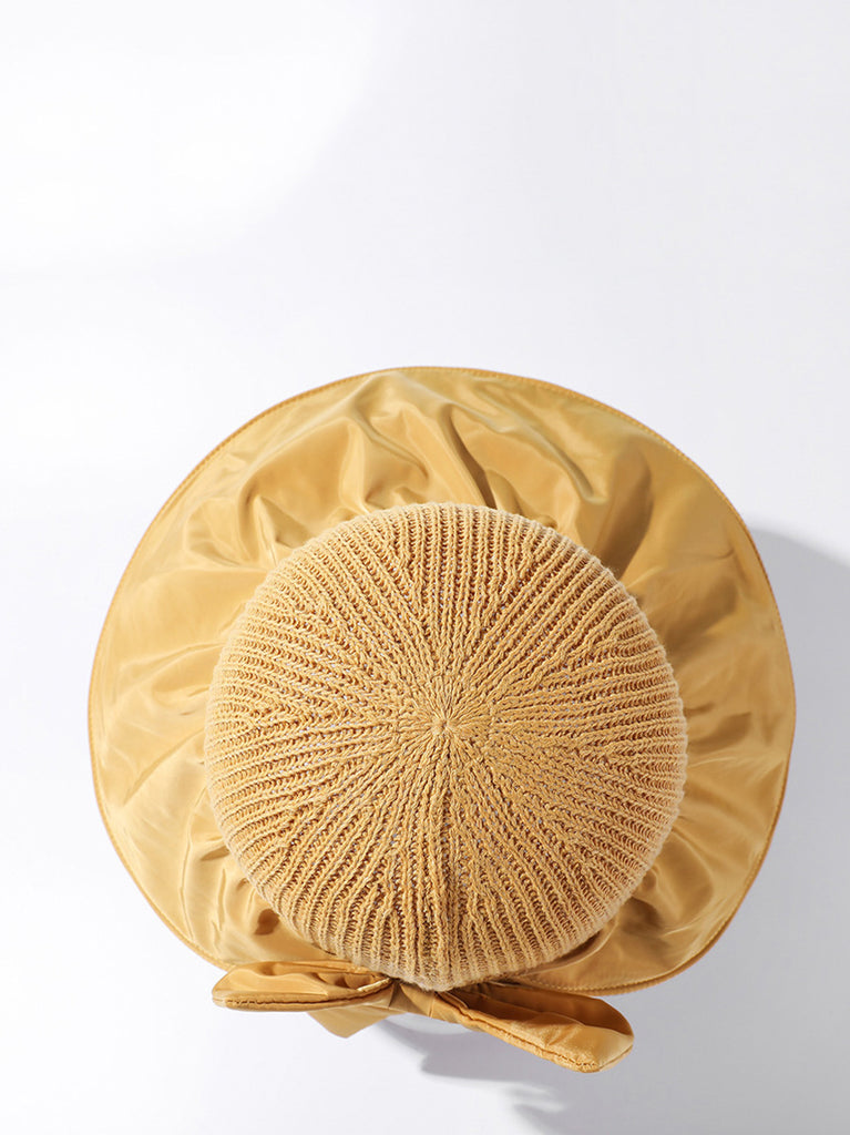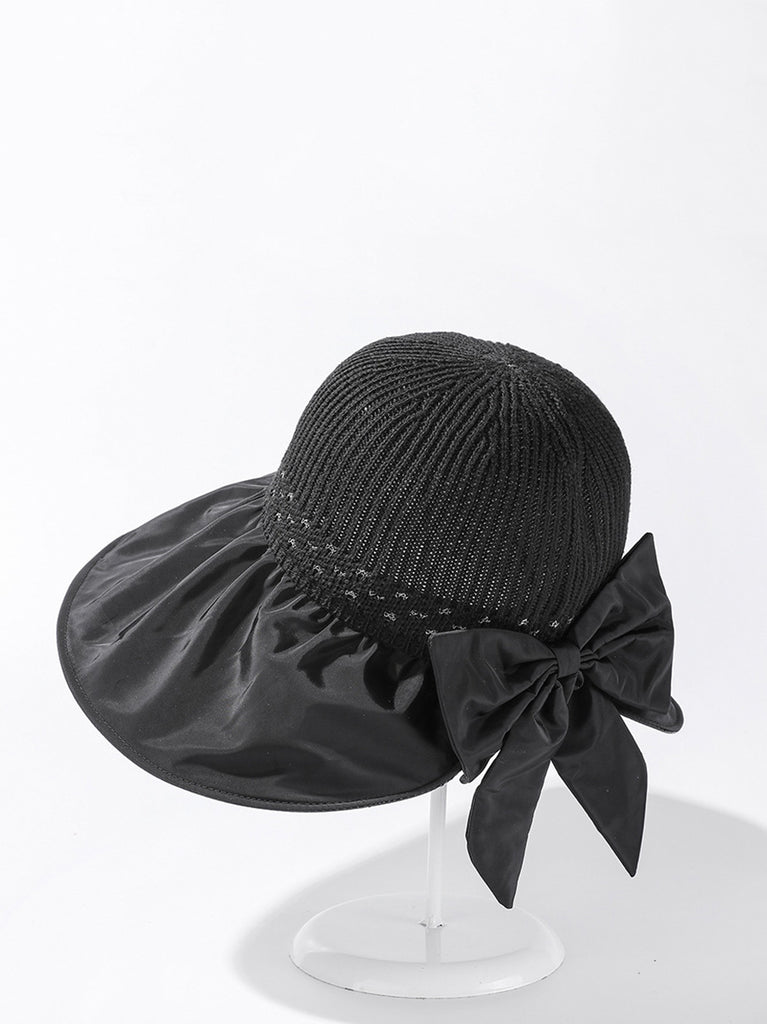 Women Summer Casual Knitted Spliced Bowknot Sunproof Hat