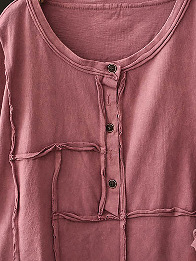Women Summer Retro Pure Color O-Neck Cotton Shirt