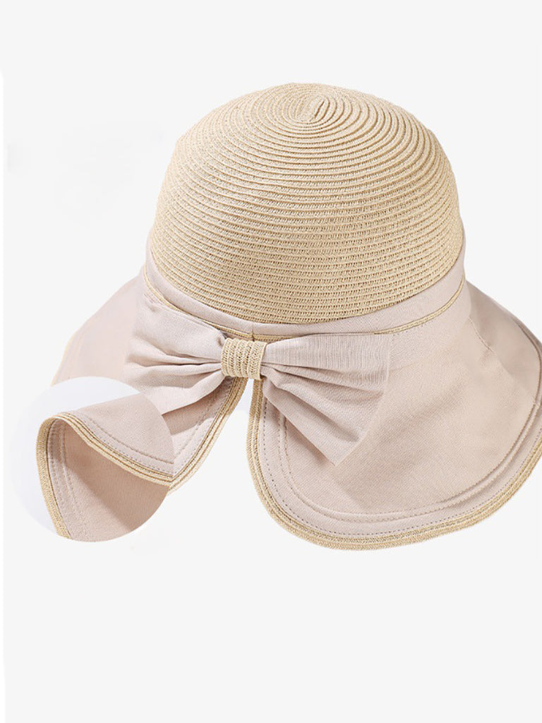 Women Casual Straw Spliced Bowknot Sunproof Hat