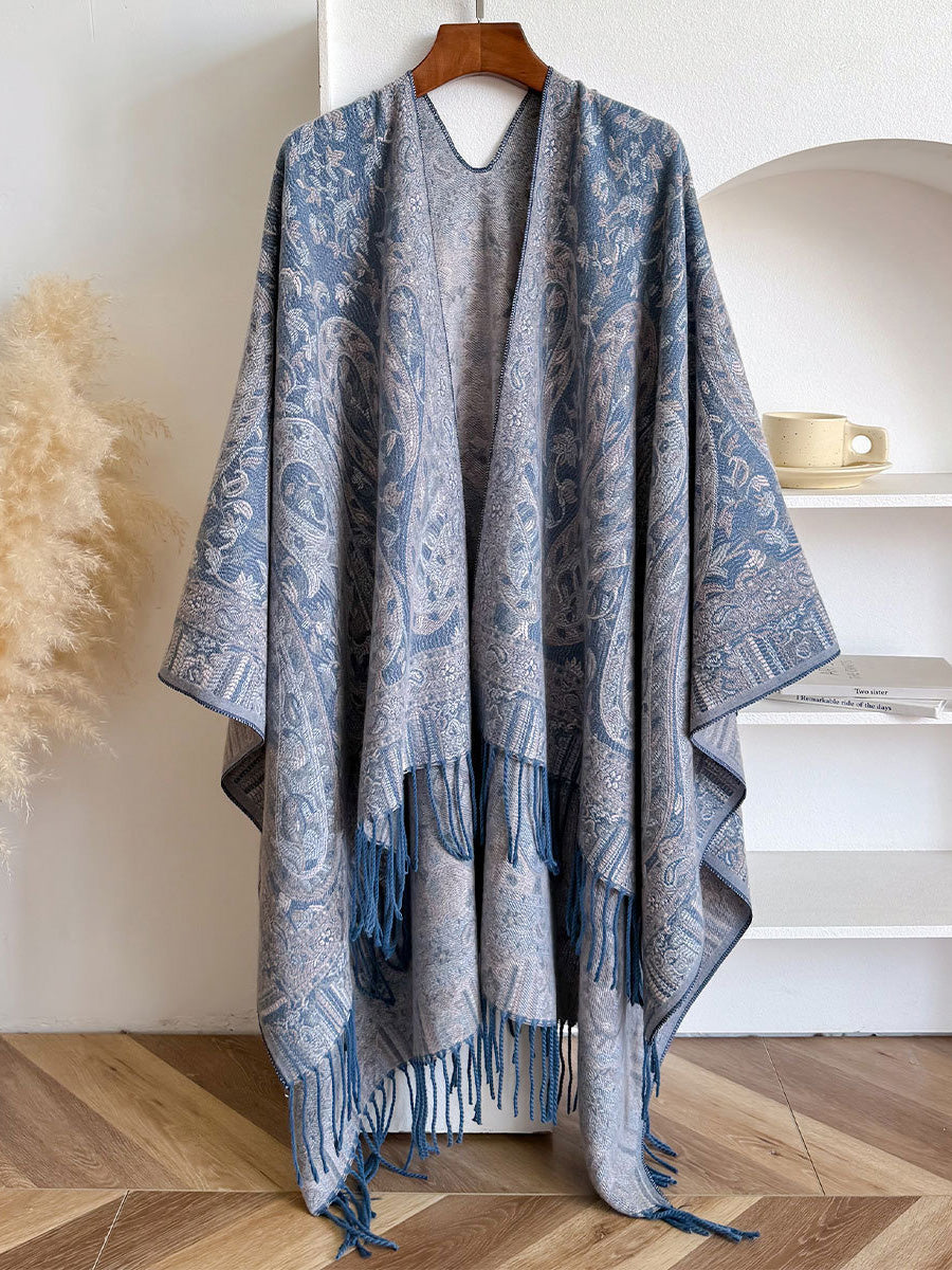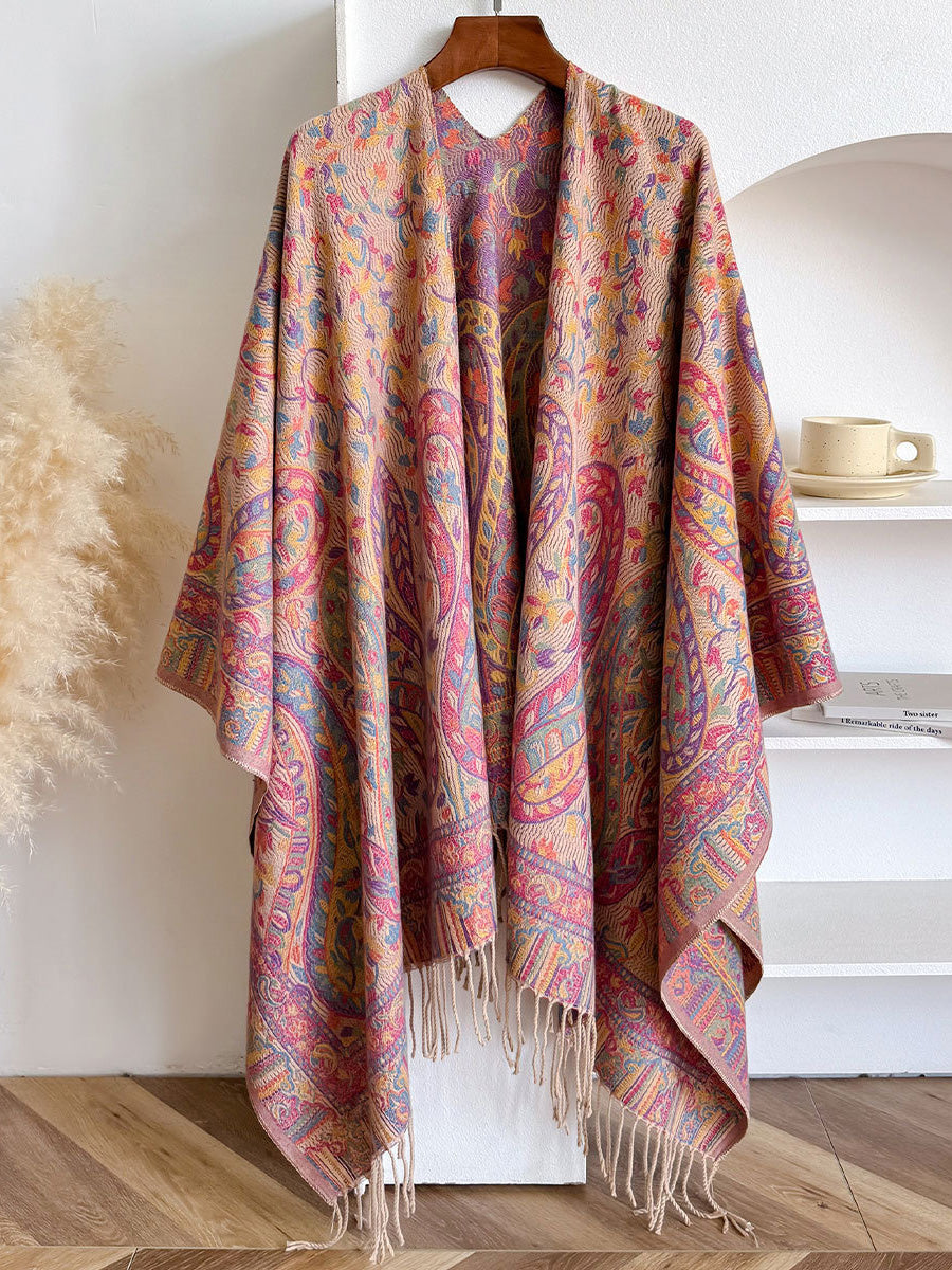 Women Winter Ethnic Flower Tassel Shawl Scarf