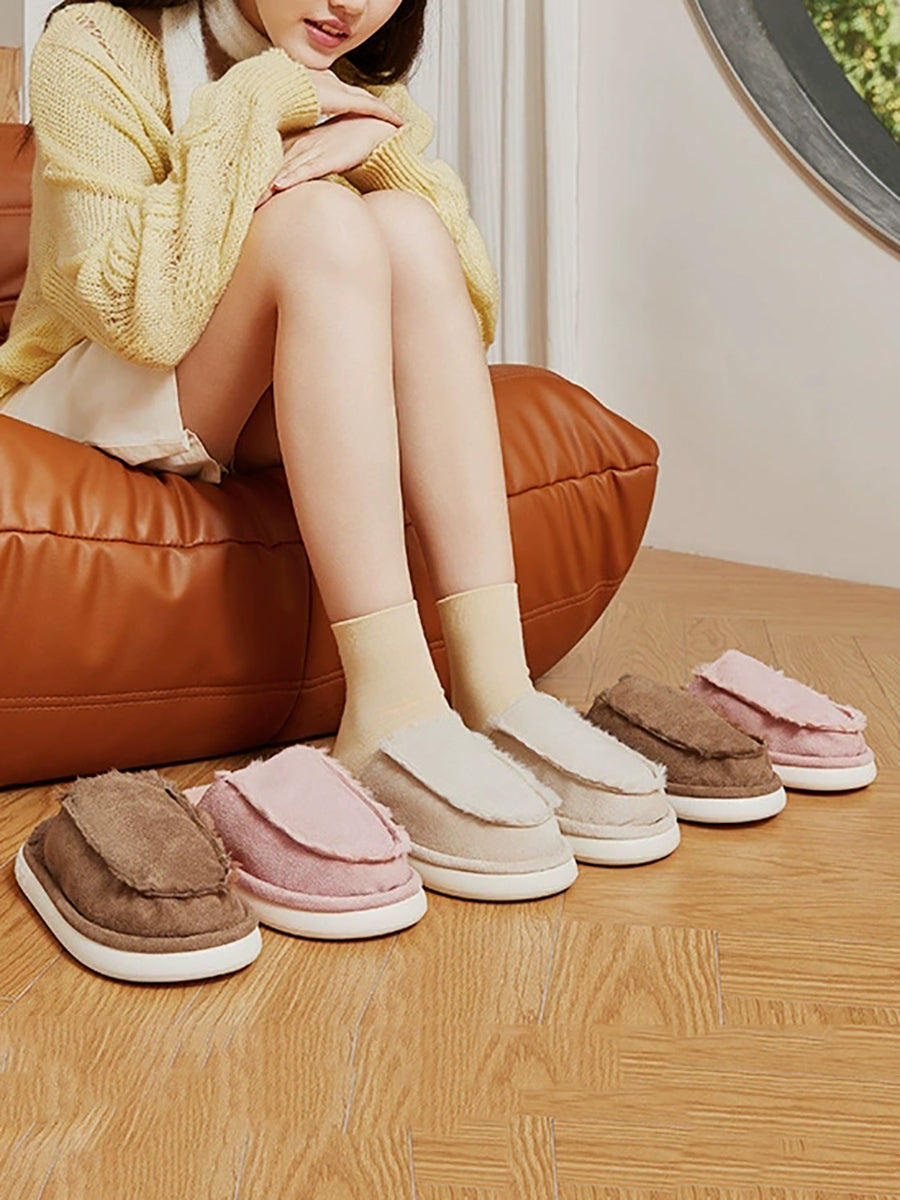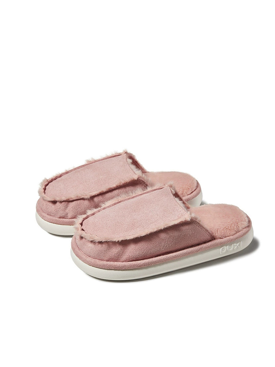 Couple Solid Indoor Warm Fleece-lined Slippers