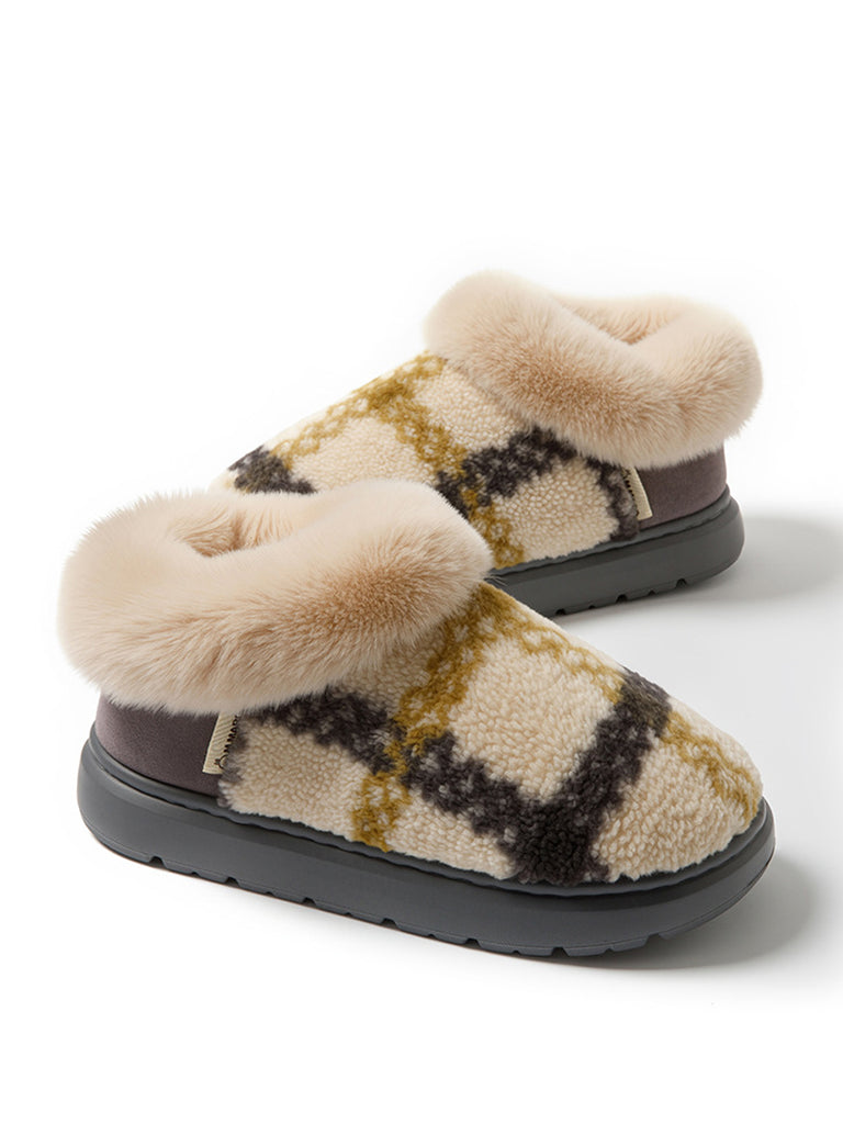 Couple Winter Casual Plaid Indoor Plush Slippers
