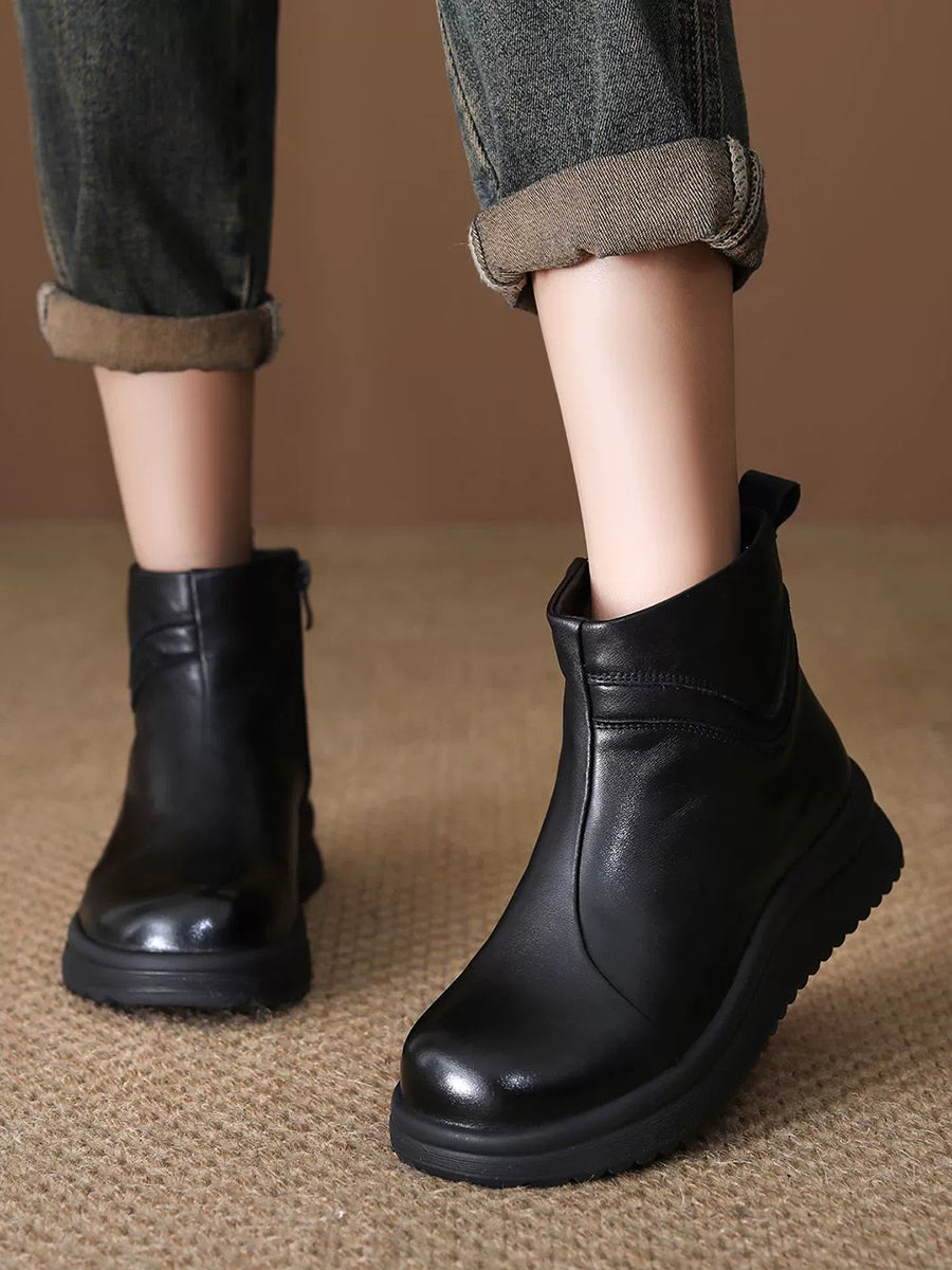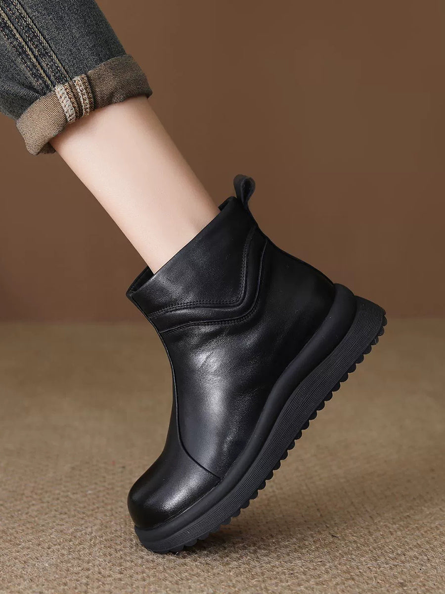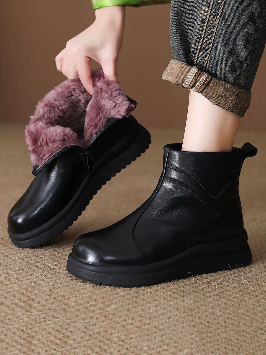 Women Genuine Leather Spliced Fleece-lined Ankle Boots