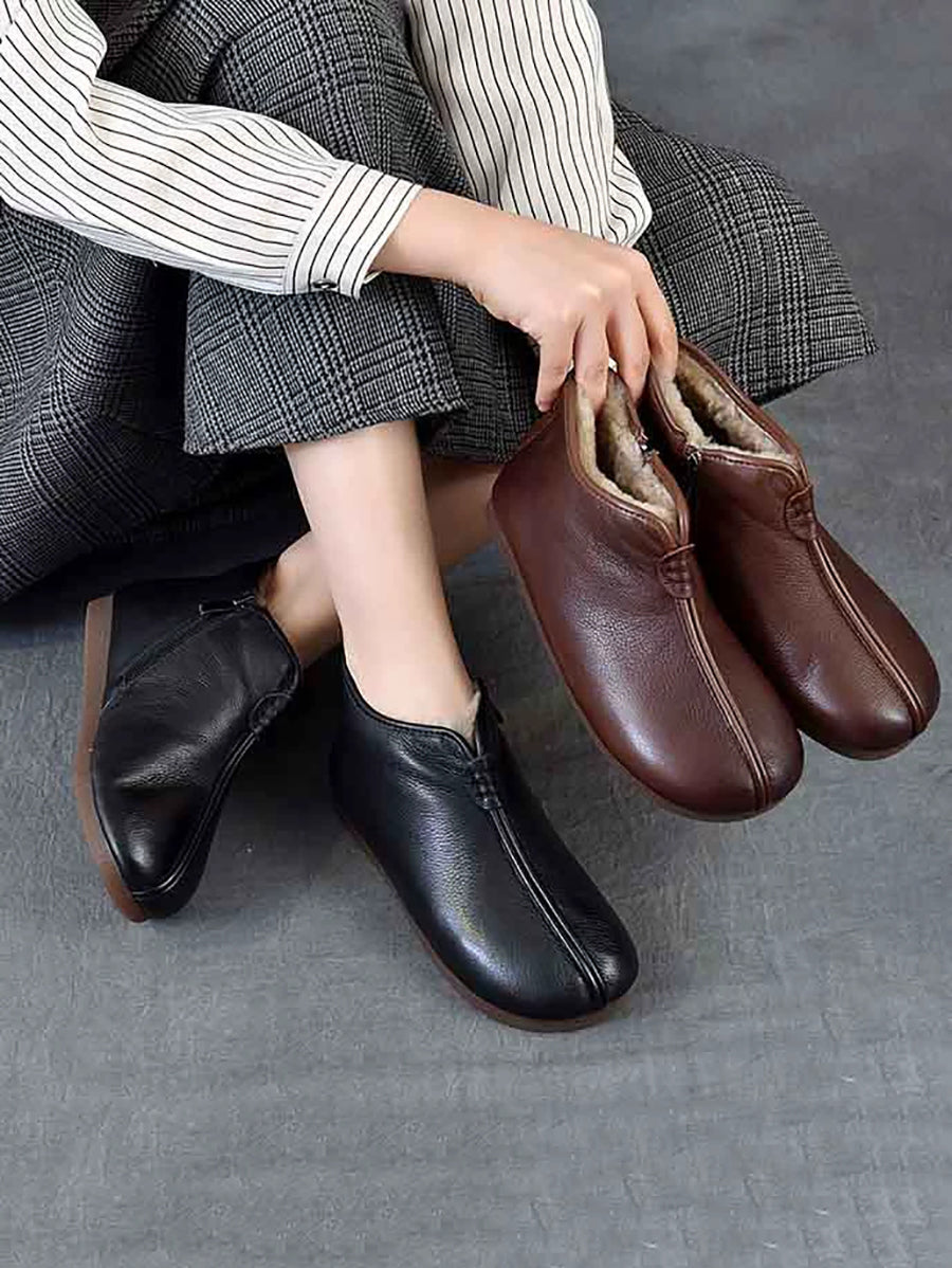 Women Winter Genuine Leather Fleece-lined Ankle Boots