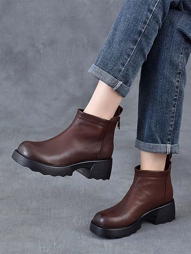 Women Winter Genuine Leather Mid-Heel Ankle Boots
