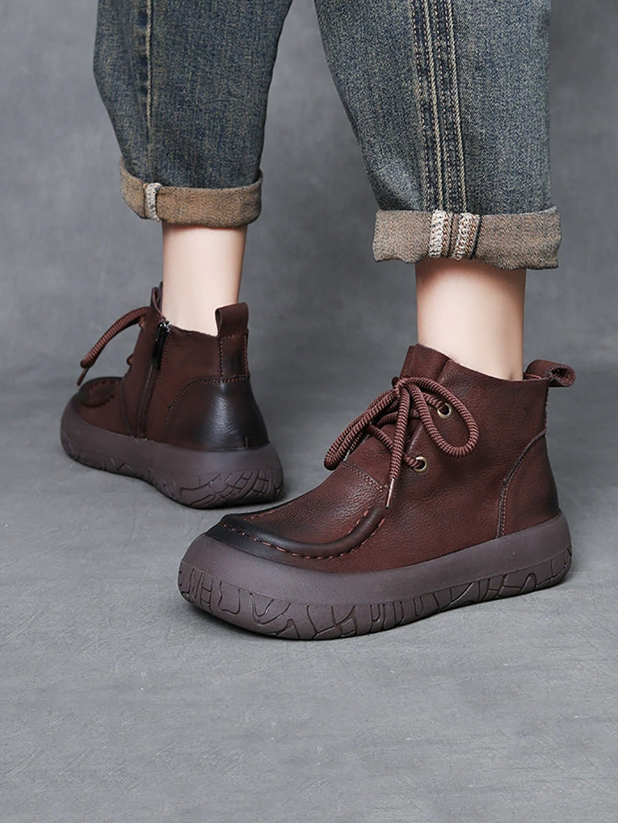 Women Winter Soft Genuine Leather Fleece-lined Flat Boots