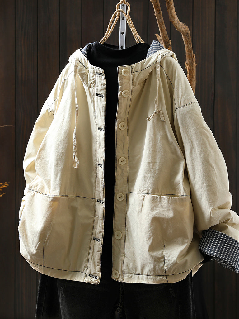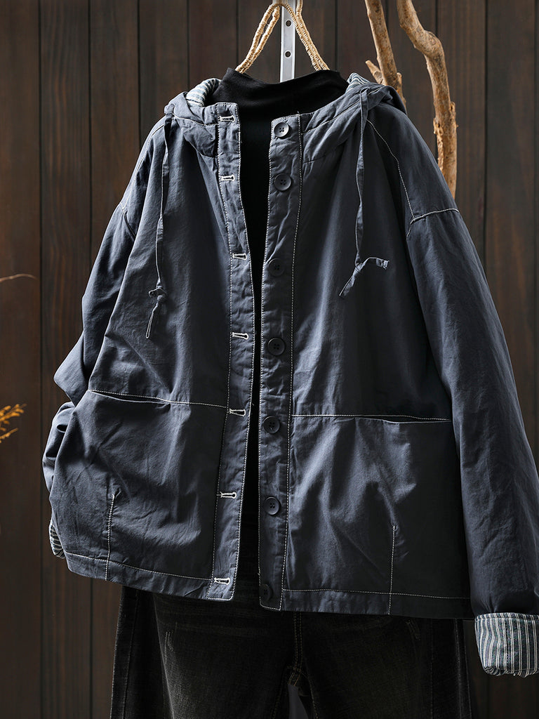Women Autumn Casual Pure Color Padded Hooded Jacket