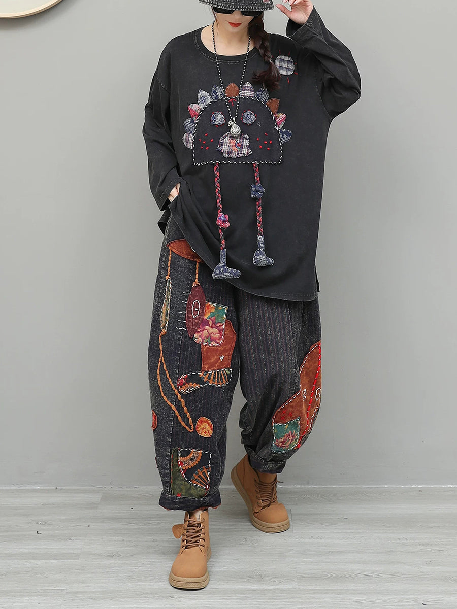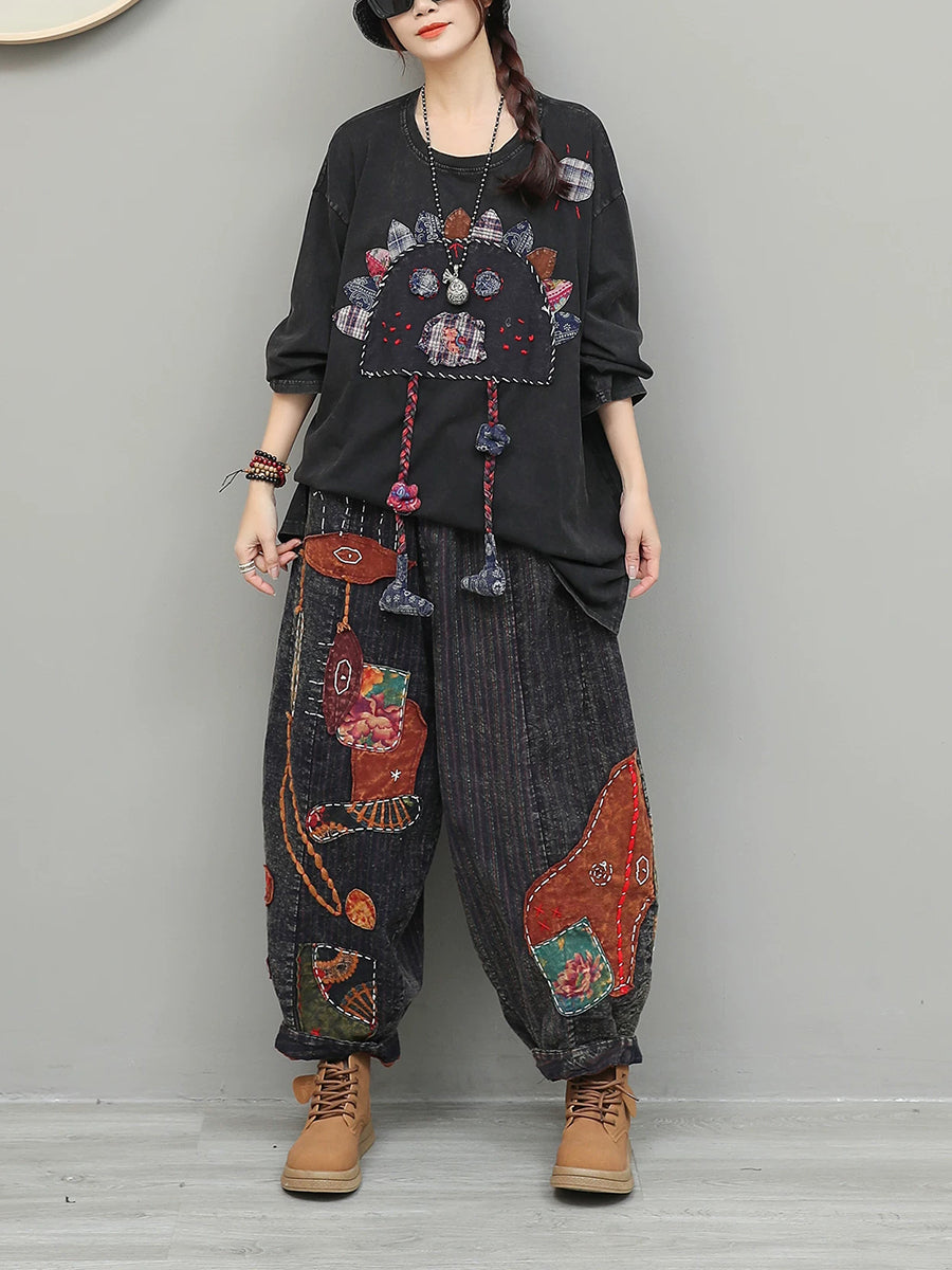 Women Spring Ethnic Patchwork O-Neck Suits