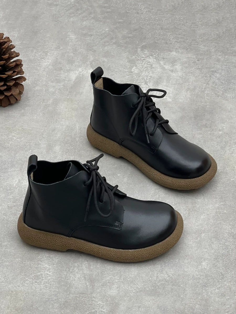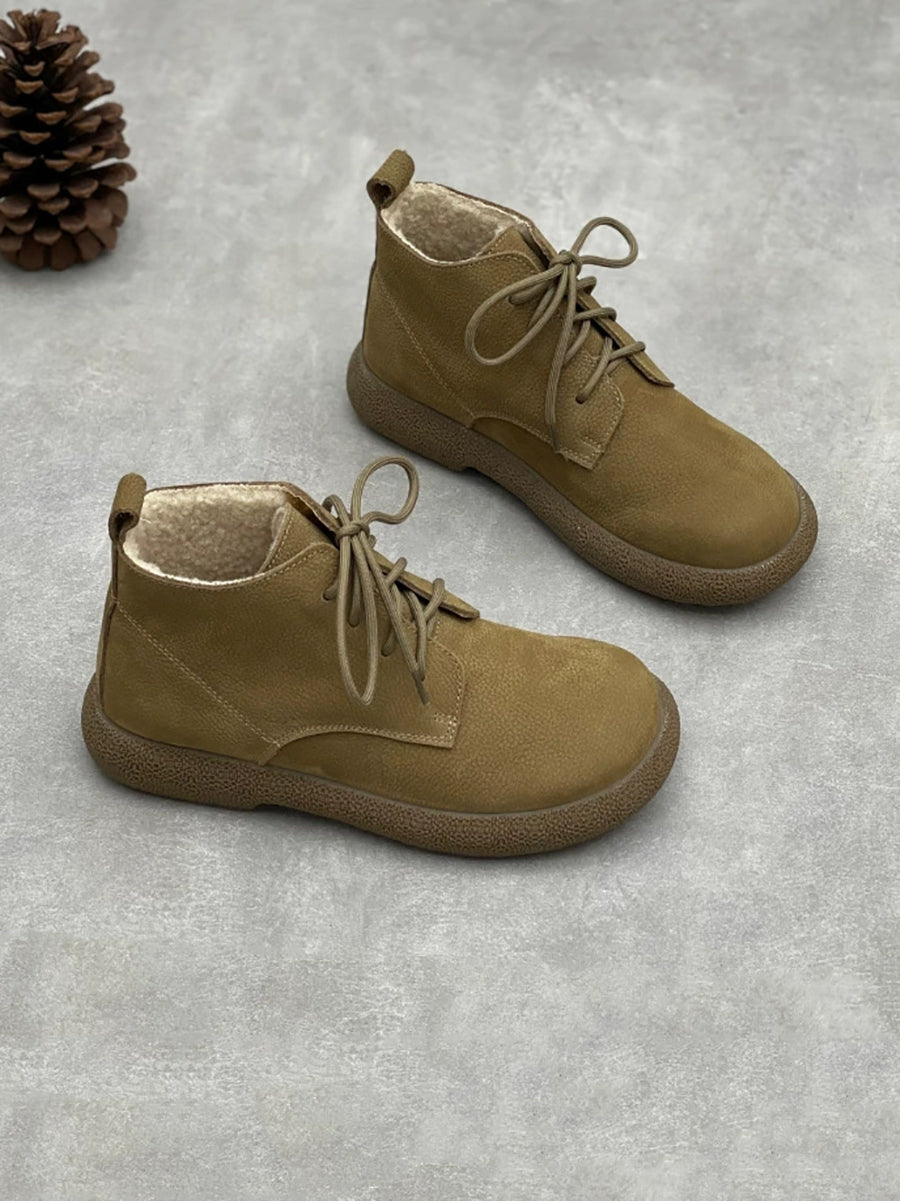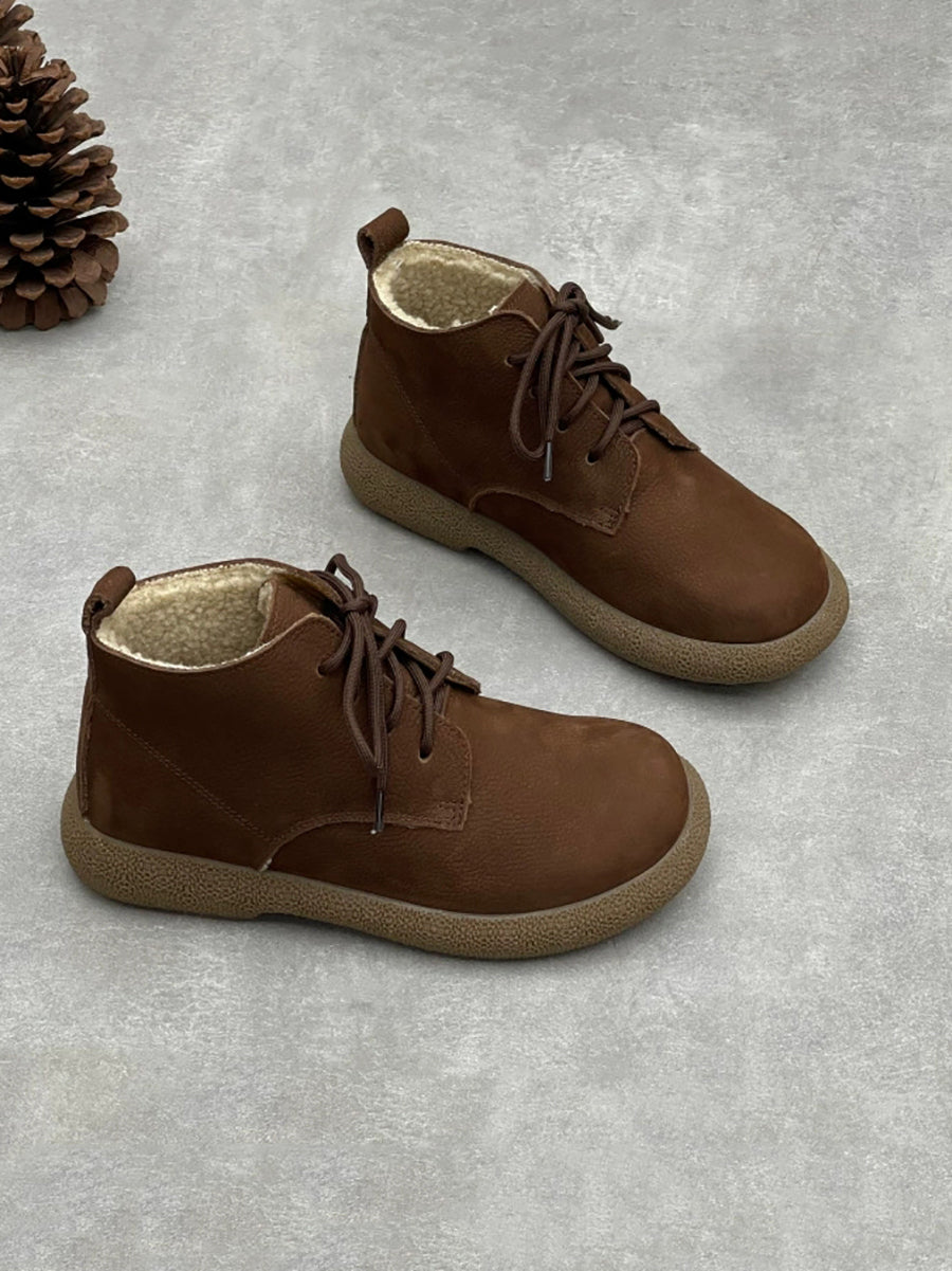 Women Winter Genuine Leather Fleece-lined Ankle Boots