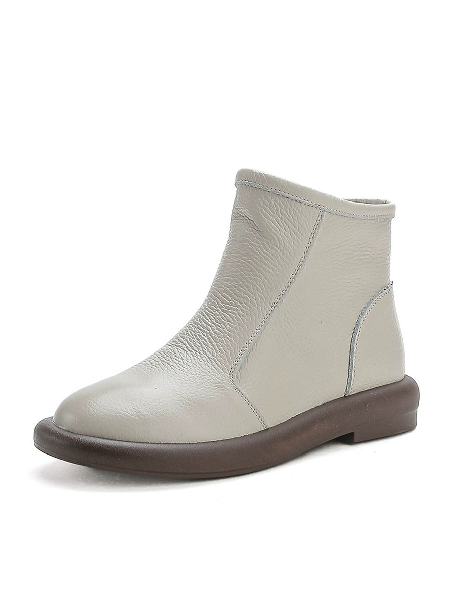 Women Winter Genuine Leather Fleece-lined Ankle Boots