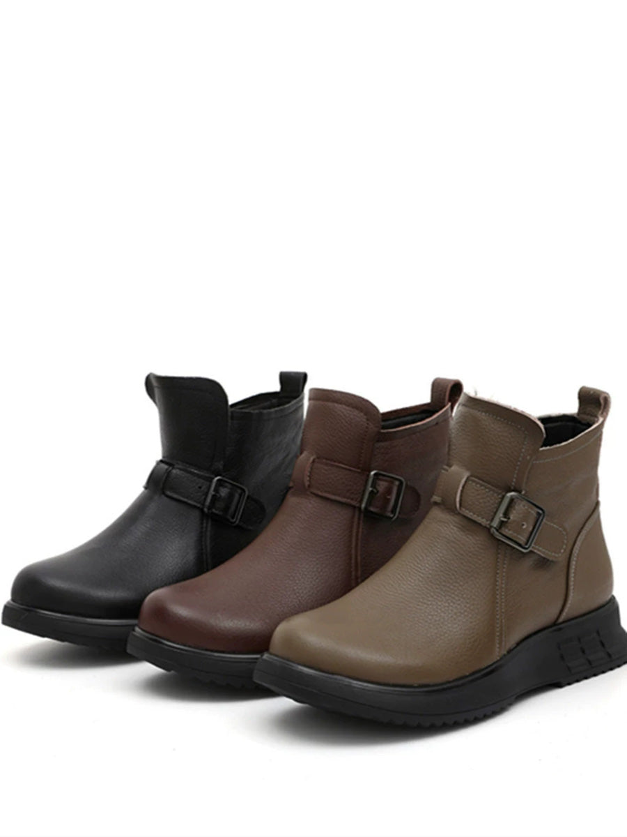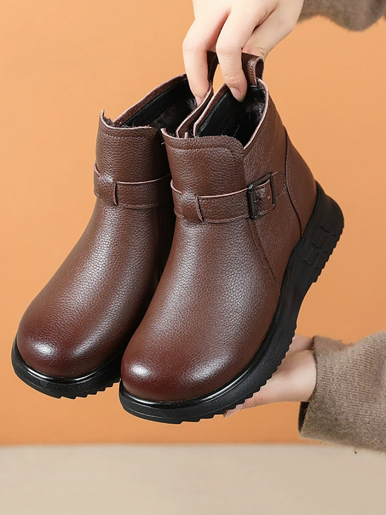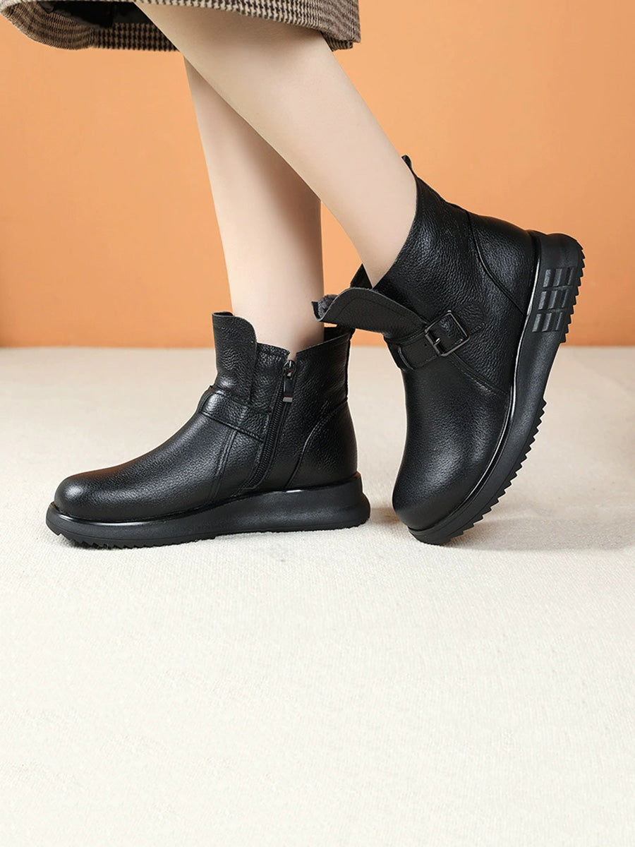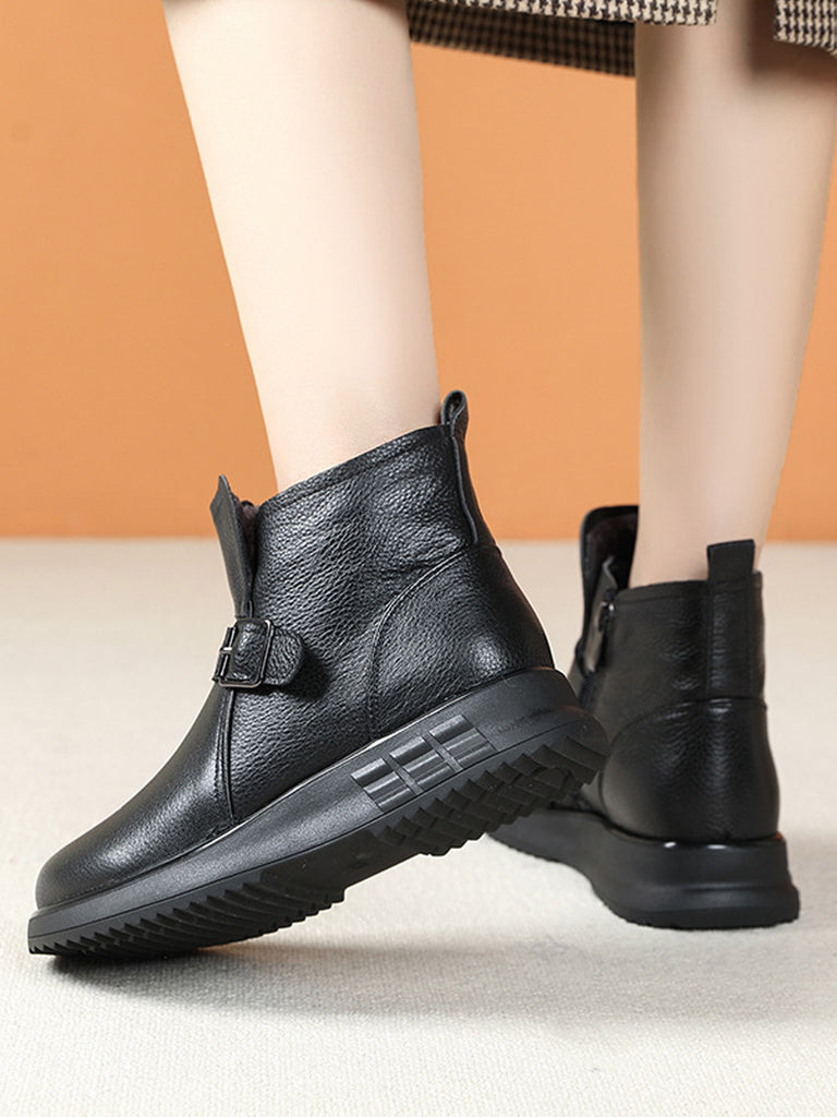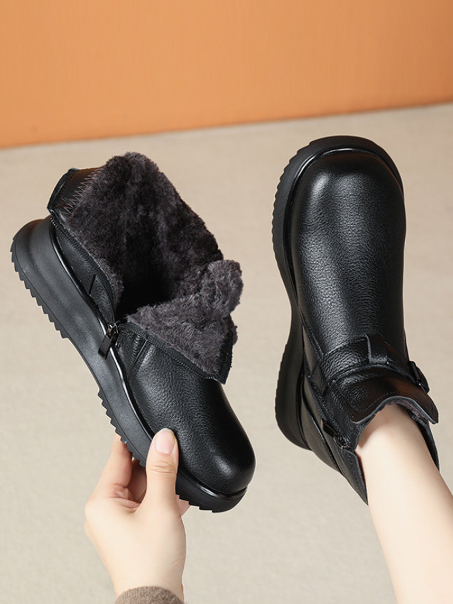 Women Winter Genuine Leather Fleece-lined Martin Boots
